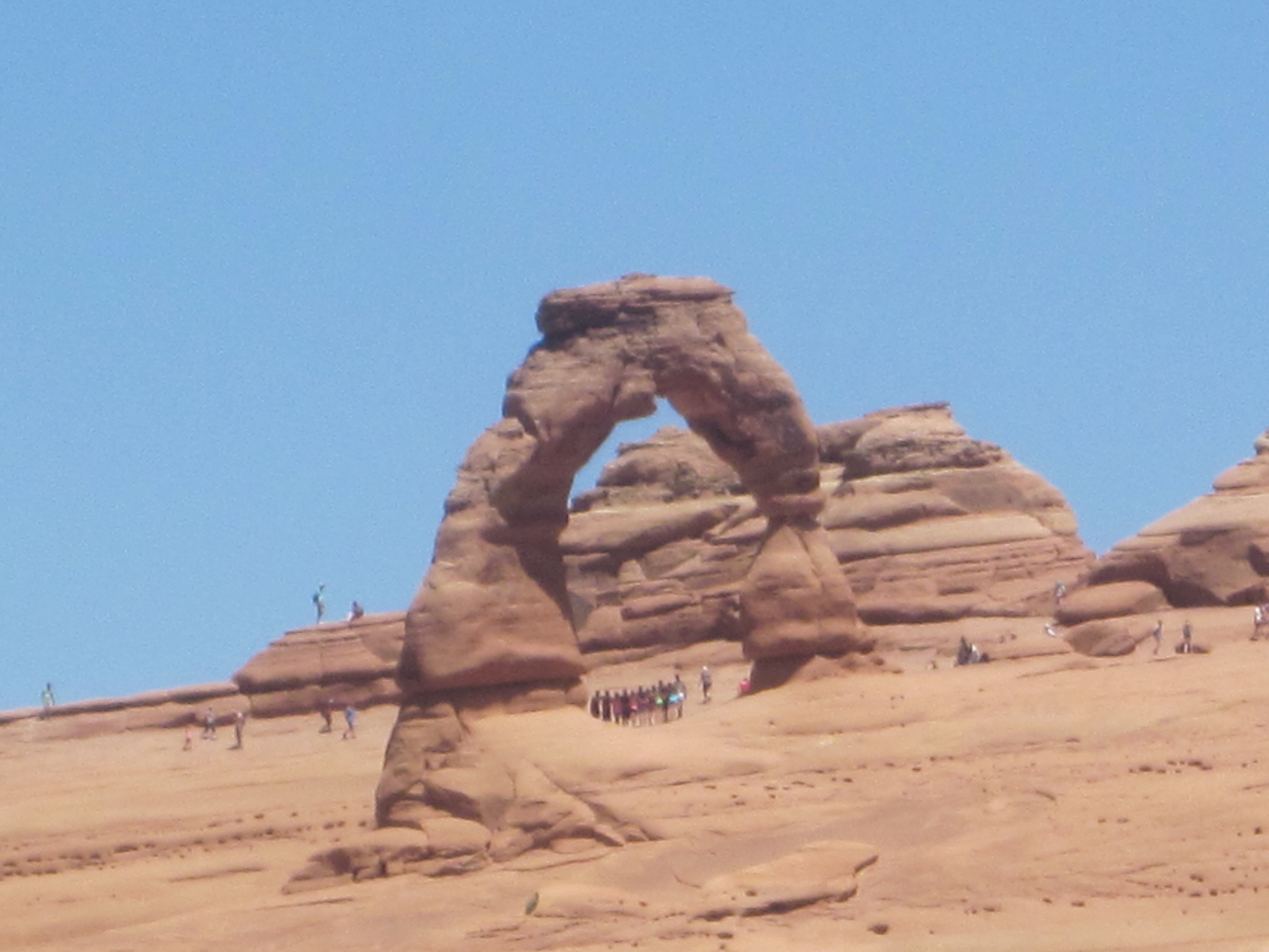 The “main” arch that most people see in photos and postcards is called Delicate Arch, which sits atop a high cliff. We didn’t realize until we got there that in order to physically get to the arch, one has to embark on a 3-mile round trip hike. Normally, this wouldn’t be a huge deal (well…) but the heat was so intense and the hike offered zero shade with which to find relief on the walk. It made every step feel that much more exhausting, and considering we’d already plowed through nearly a liter of water a piece (sans hiking), we decided to nix it and take a ½ mile loop that gives you a view of (but no access to) the arch. I’ll recover, comfortably, in my air conditioned car.