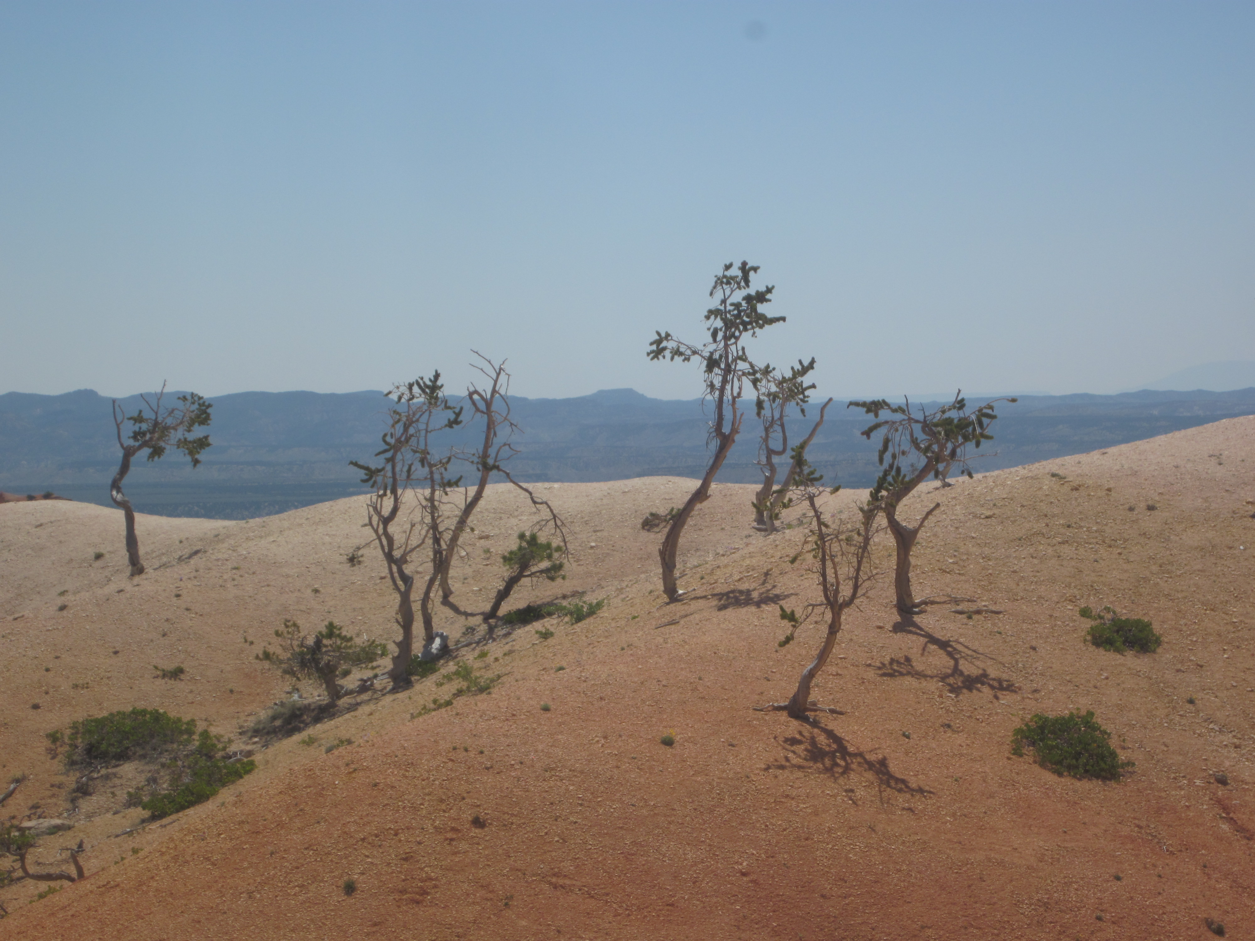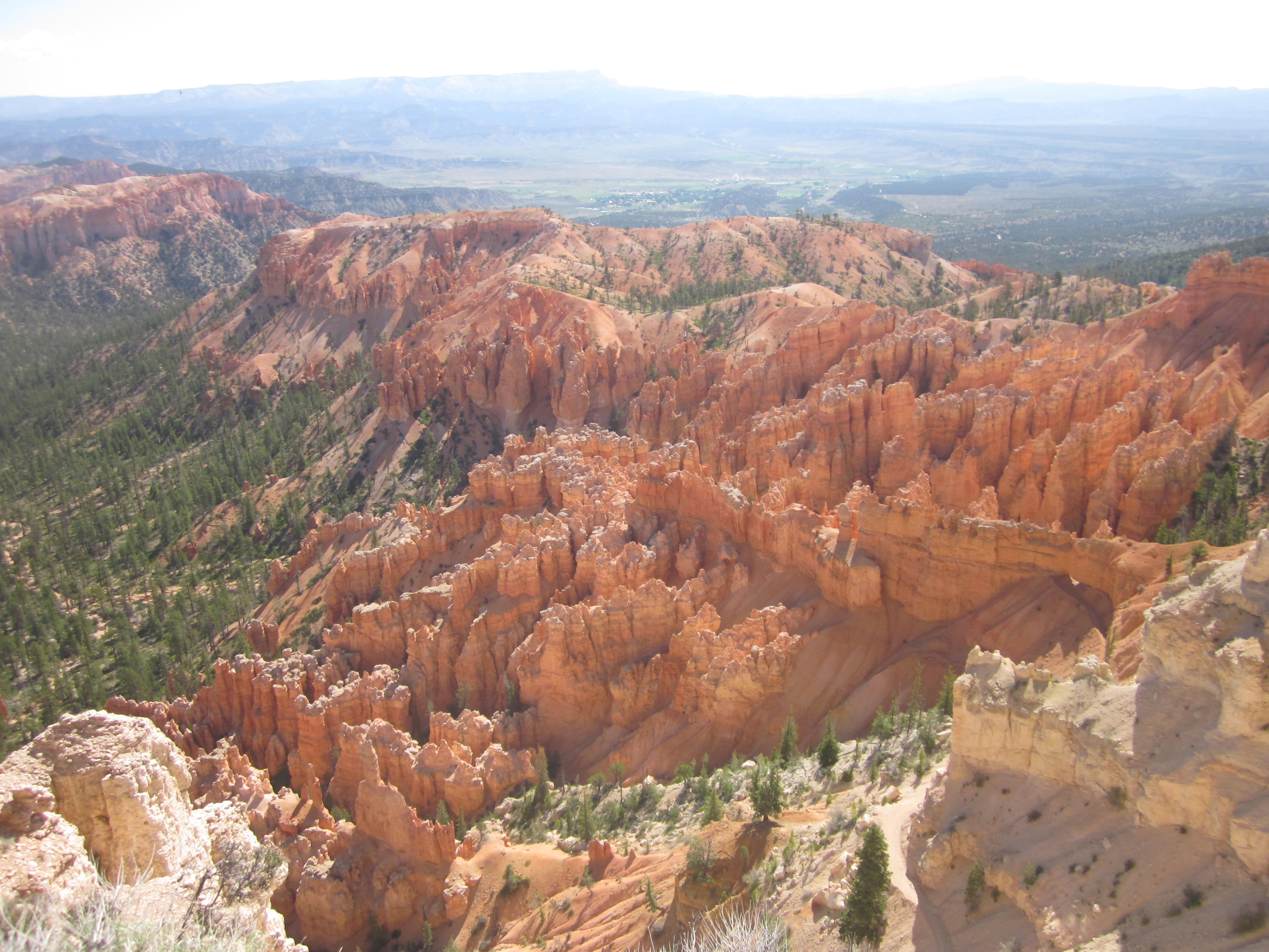 We checked out early and left little Panguitch after spending a few minutes blow-drying our sneakers from our river-walking the day before. We headed for Bryce Canyon, where we took the main scenic drive through the park and stopped at various overlooks. The park reminded me a lot of the Grand Canyon but, dare I say, I actually liked it more than the Grand Canyon. The canyons were layered with interesting rock formations that changed at every turn and jutted out in different directions. We tried to take a horse ride down to the canyon floor, but since they were booked out, we chose a 2-mile hike to the bottom instead. I liked the availability of short hikes to the floor, versus the Grand Canyon where you had to commit to a daylong venture in order to make it there (this, as you can guess, didn’t happen when we visited. Variety is my friend).