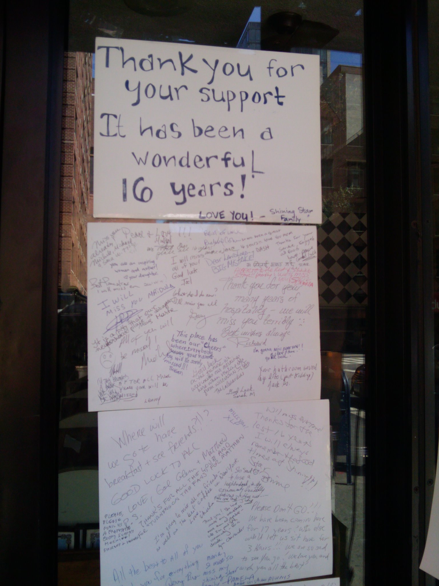 Shining Star was the poster child of a neighborhood diner. While they didn’t have a “signature” food item or a selection that was wildly unique from any other area eatery, Shining Star had the special distinction of really knowing the community of Upper West-Siders who frequented it. The people who worked there knew my entire family and consistently greeted us with warm smiles and provided the comfort of being somewhere familiar. I did my fair share of munching down weekend breakfasts, post school-day plates of melt-y chicken parmesan platters, and drunken 4am delivery orders of chicken fingers and slices of cheesecake (to be consumed on the roof of my building). This was the only place in the area where I could call and say, “I would like an order for delivery please” and receive the response: “Oh hey Sara, how are you??” If I didn’t order cheesecake, sometimes it would mysteriously show up at my door regardless. It was like they could read my food-brain.