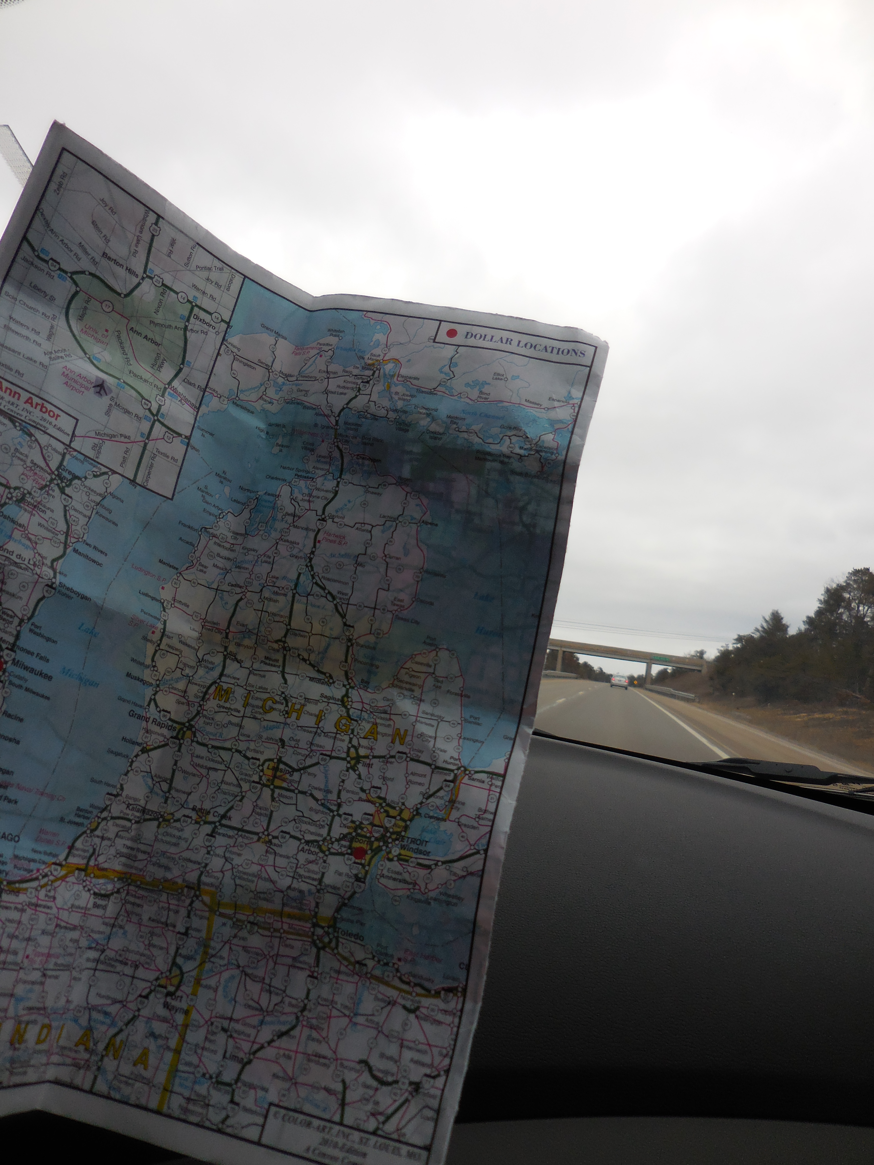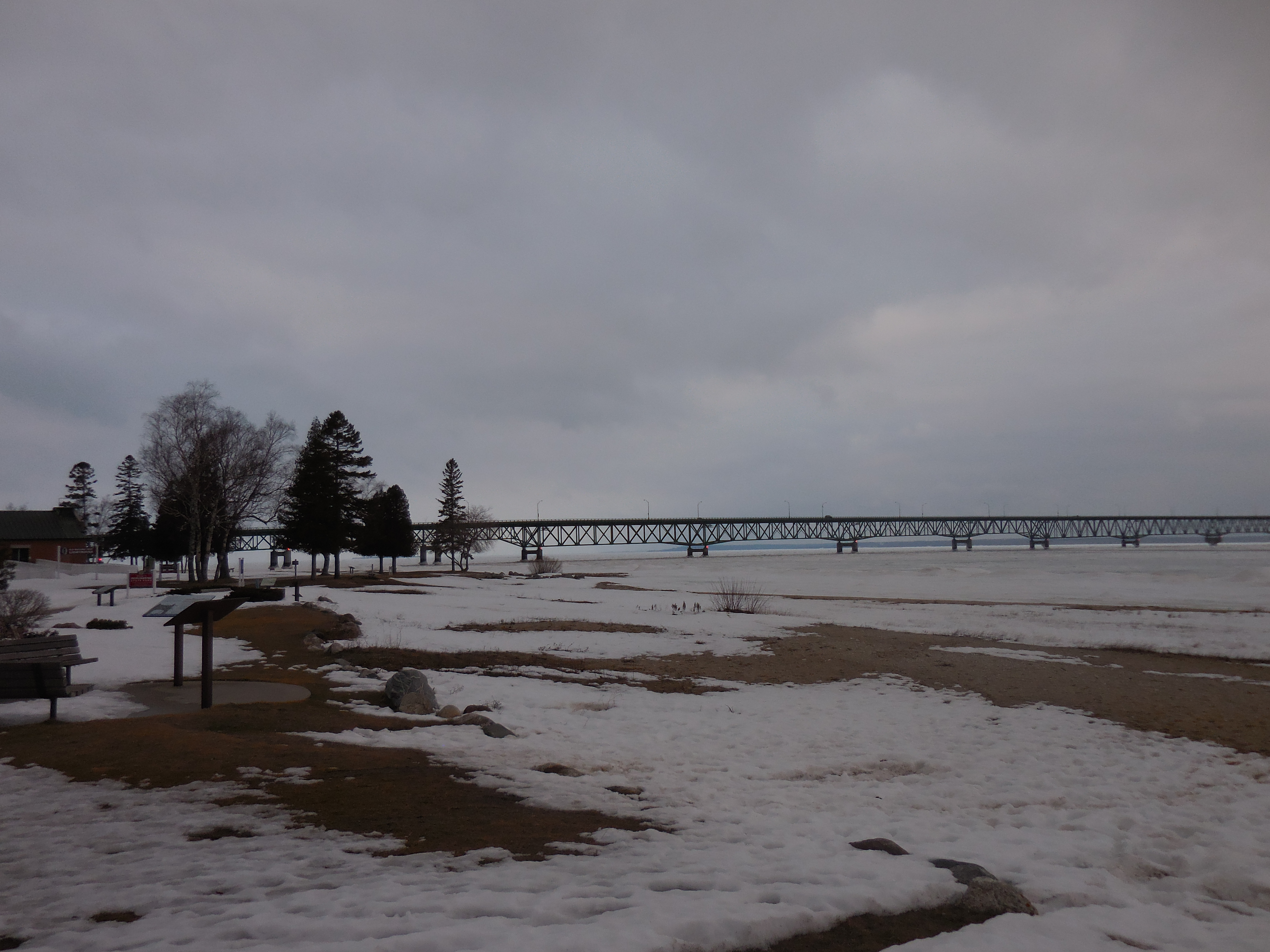 Two days before we flew to Detroit, Katie and I made a last minute decision to take the northern route on our way to Milwaukee instead of the (much shorter) southern course. This is one of the reasons that we don’t book our hotels in advance. After some finagling with Google maps and a glance at the paper atlas, we chose to drive up Route 75 and cross the Mackinac Bridge before landing in the little town of St Ignace, chosen on a whim. The road opened into the distance and became less and less congested the further we got towards the bridge, validating our decision to avoid the more inland and town-filled roads that lay in the other direction. In addition to quieter surroundings, we started to see more and more snow on the ground. At one point, we passed through a swath of flurries that sent a frosty shudder down my spine—knowing that a freak-blizzard was not completely impossible. Luckily, no snowpocolype occurred on this drive (two weeks ago, we might not have been so lucky).
