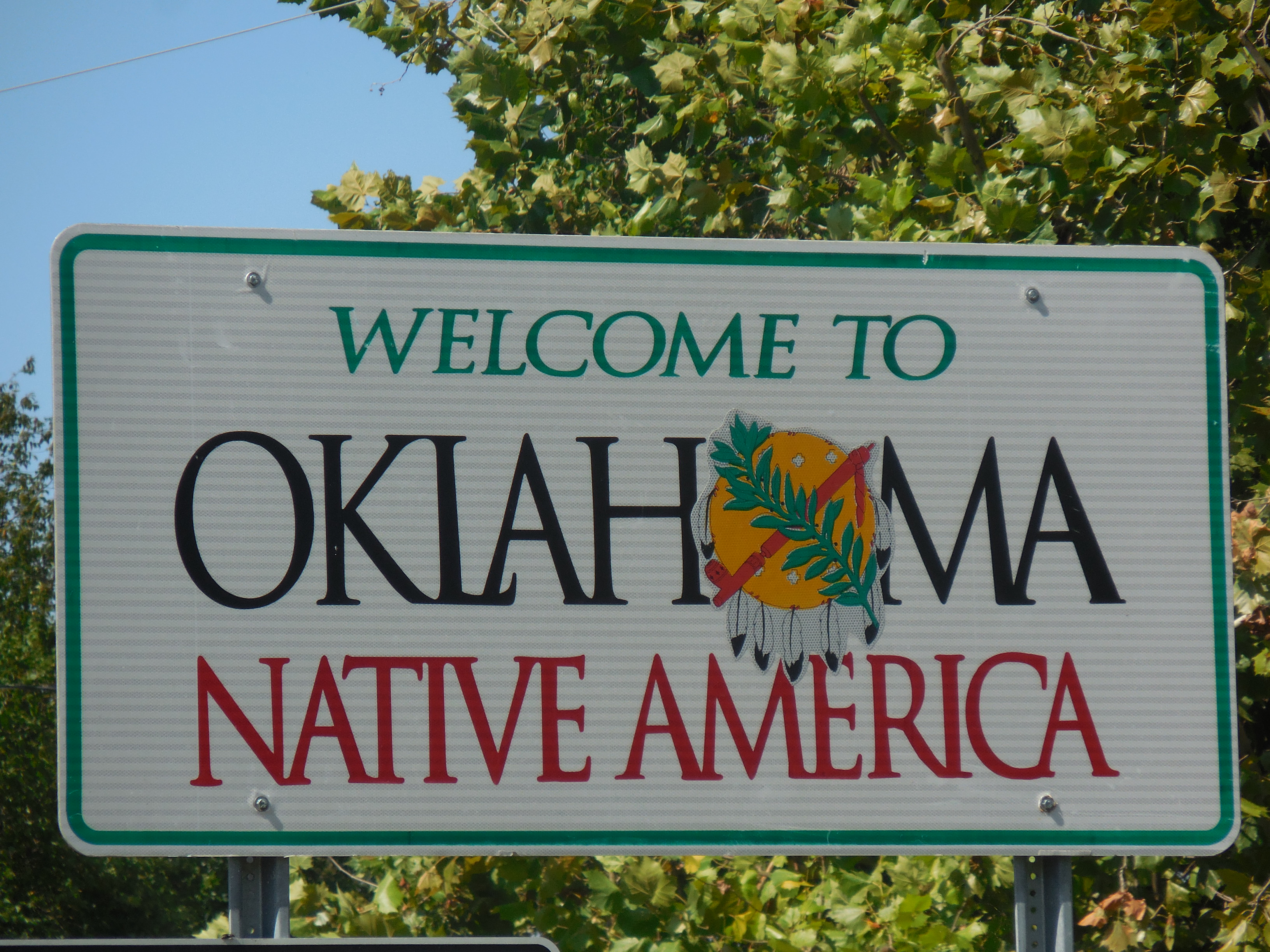 Our mission to find a tiny road with which to enter the state of Oklahoma proved successful. Defying GPS orders to stay on Route 40, we veered off track and took Route 59 north that wound through a small patch of the Ozark National Forest and some tiny Arkansas towns. We knew we would have a better chance of getting a picture standing under the state sign if we crossed the state boarder on one of the little routes we saw on our paper atlas. We passed a barely-there town of “Natural Dam” which had a 60’s-style gas station and dark-looking café that gave me a few chills as I darted inside to find a bathroom. The