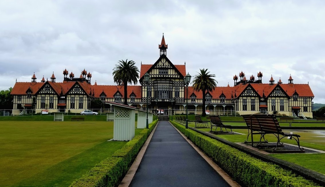 We spent a lazy morning in Rotorua, rising slowly and not rushing out of town. The plan was to visit the Rotorua Museum, but we learned that it’s closed indefinitely in order to bring it up to Earthquake code standards. The outside of the building was intriguing and grand, so it was worth a trip over there if even just for a picture.