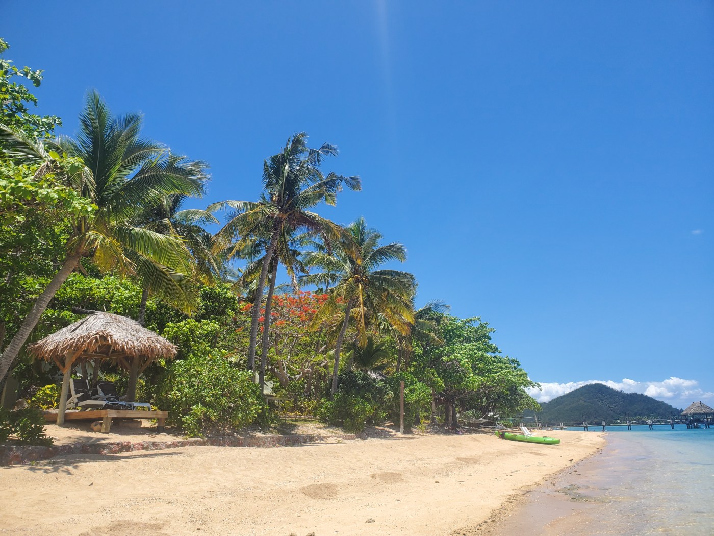 After returning our kayak, we dove into the water right by the shore and went to see what kind of fish were hanging around the shallow end. Amazingly, the reefs just offshore were almost as beautiful as the ones deep in the ocean from our island-hopping excursion. We moved slowly across the top of the water and moved through schools of neon-colored fish, some that were 2 feet long and nipping aggressively at things deep within the reef. Nowhere else can you explore a sight like that only yards from your pile of towels on the sand.