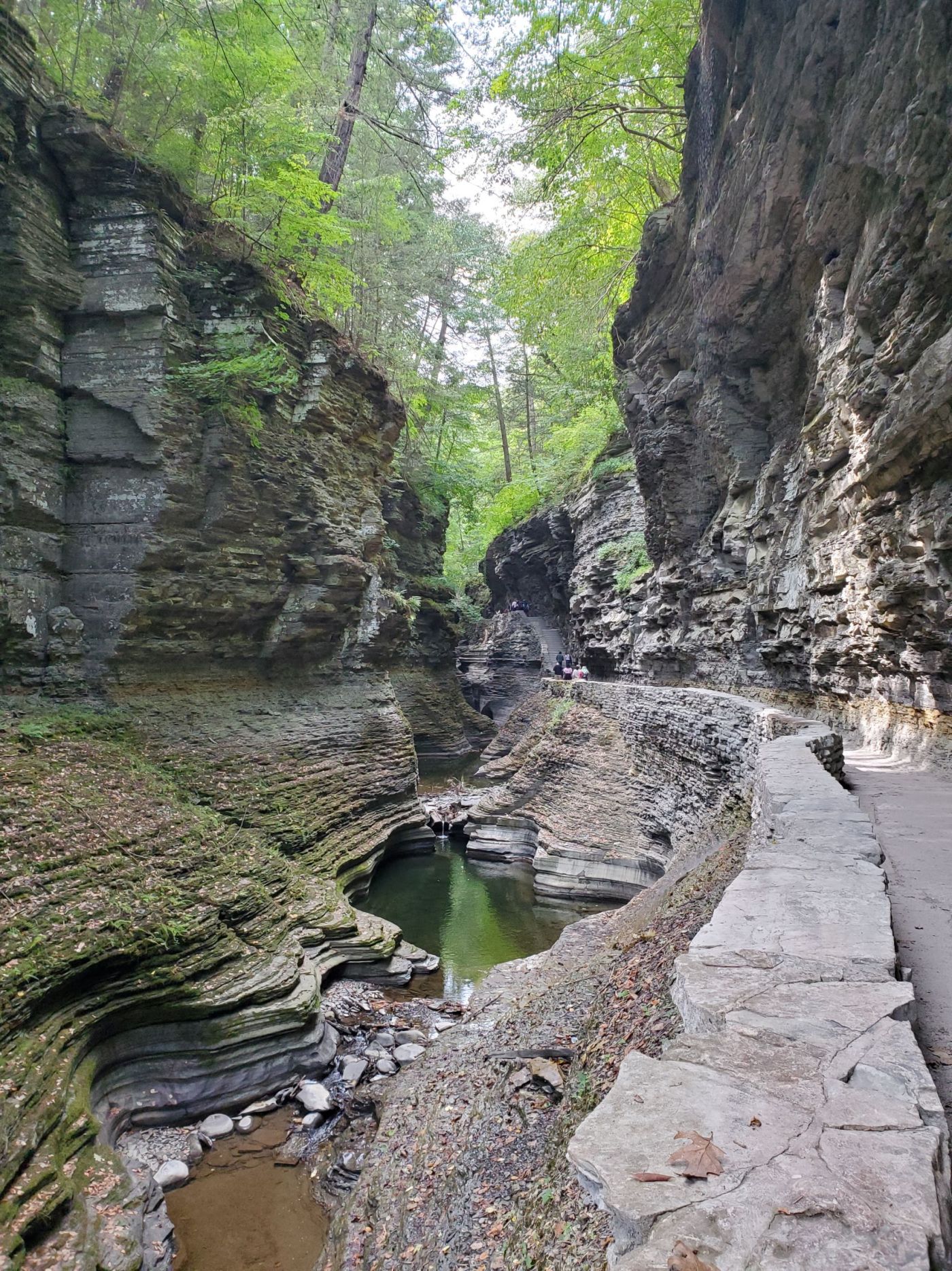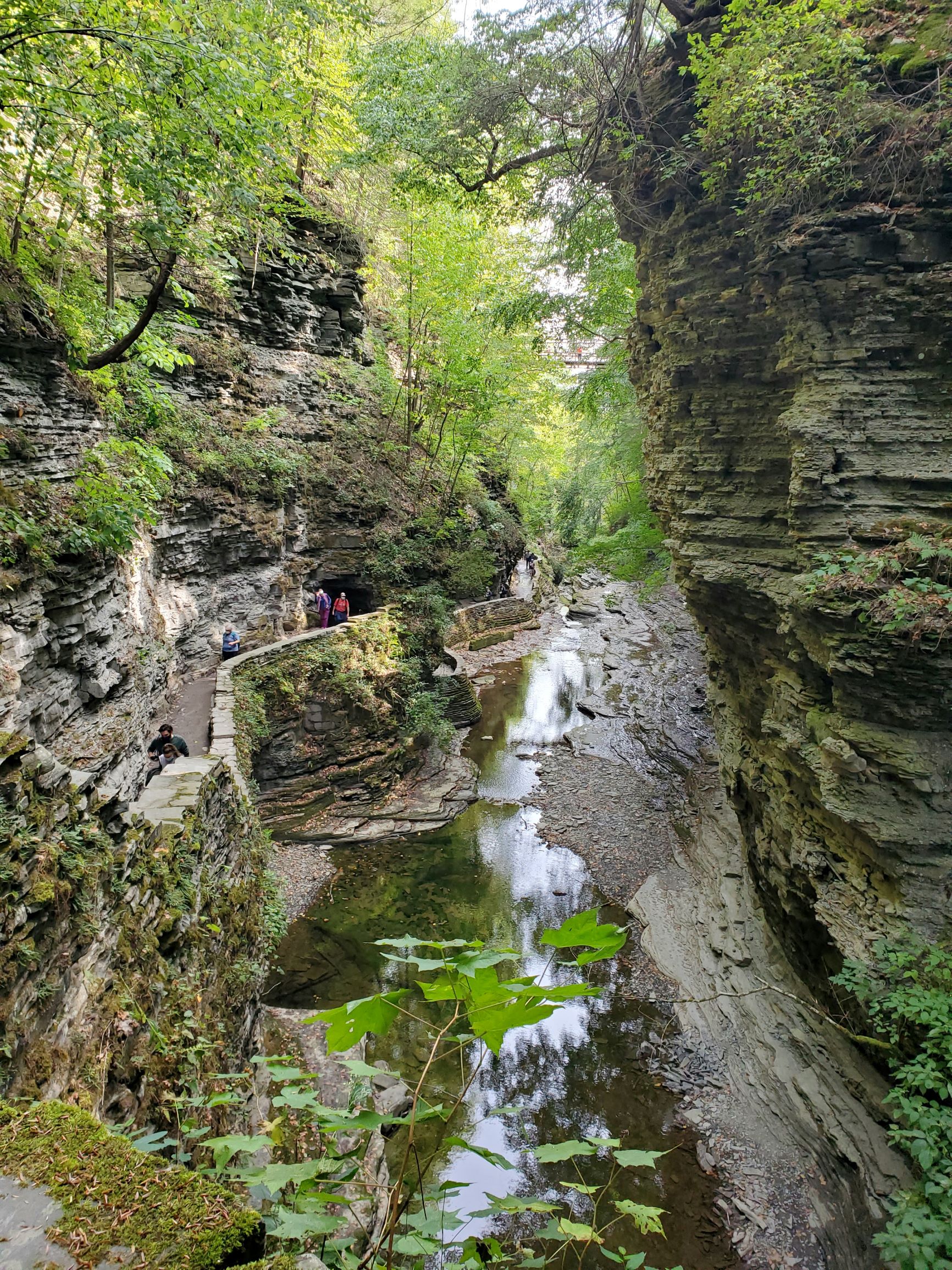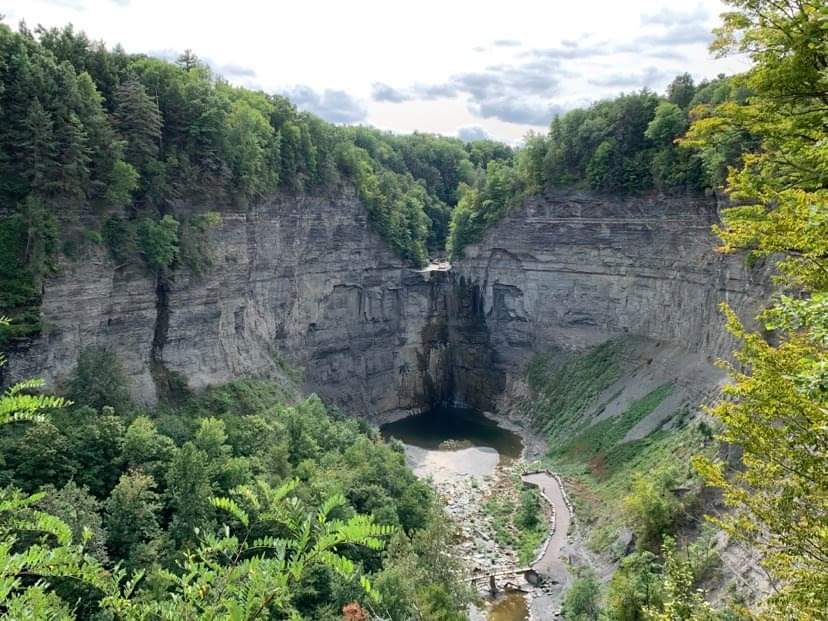 Taughannock Falls is NY State’s largest waterfall. It is normally a striking sight to see, but we arrived at an uncharacteristically light trickle where a powerful rush of water normally flows. Locals and rangers alike commented on how unusual it was to see the falls so scant. Even still, it was beautiful. The water flows down between two extensive cliffs colored with thick green foliage and patches of red moss.