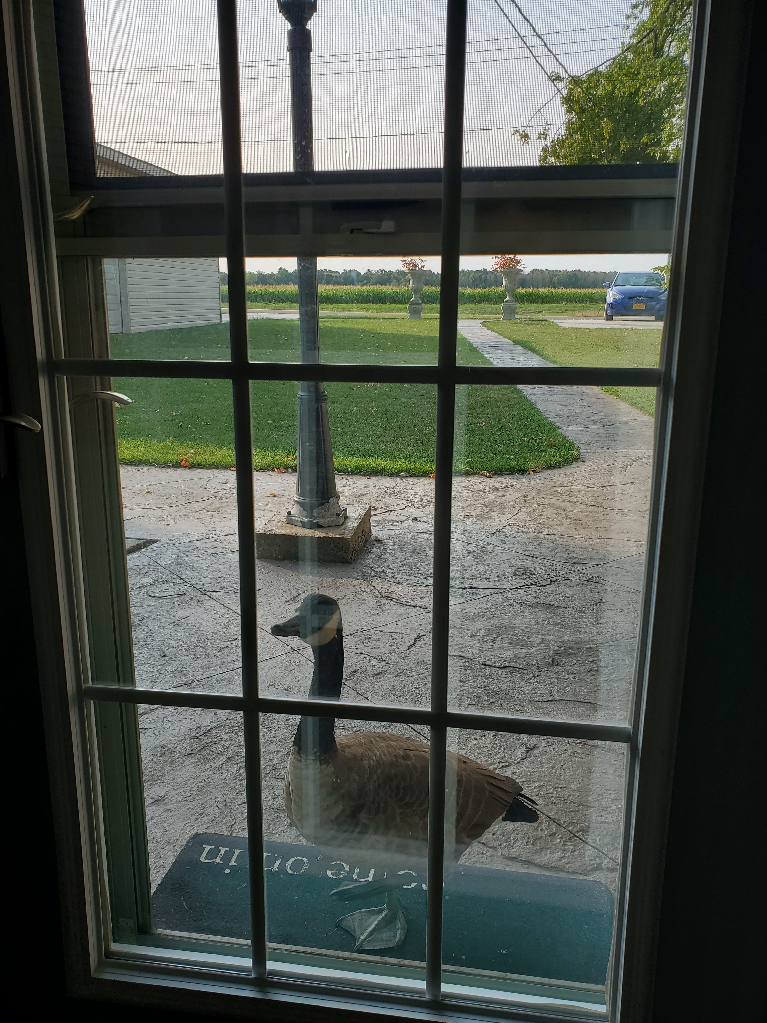 One morning we were visited by a rouge goose. I looked out the front door and he was just standing there on the welcome mat. I laughed it off after nearly spilling my coffee all over the floor, thinking he would get scared and quickly fly off. Instead he hung around for hours as we went about our morning—by our breakfast table, watching from outside while we washed dishes, poking his beak against the screen. He stood next to the car like a small abandoned child as we finally drove away for the day. We named him Gilly and seriously hope he makes some friends.