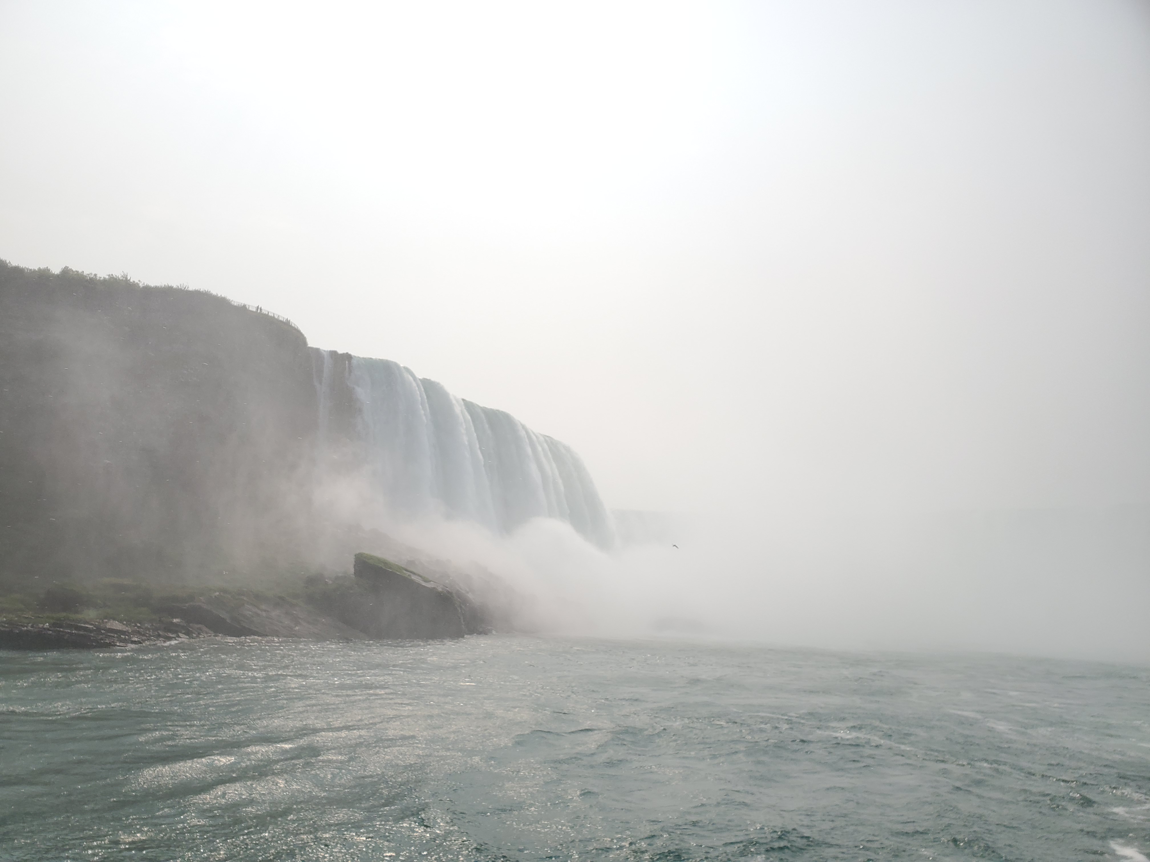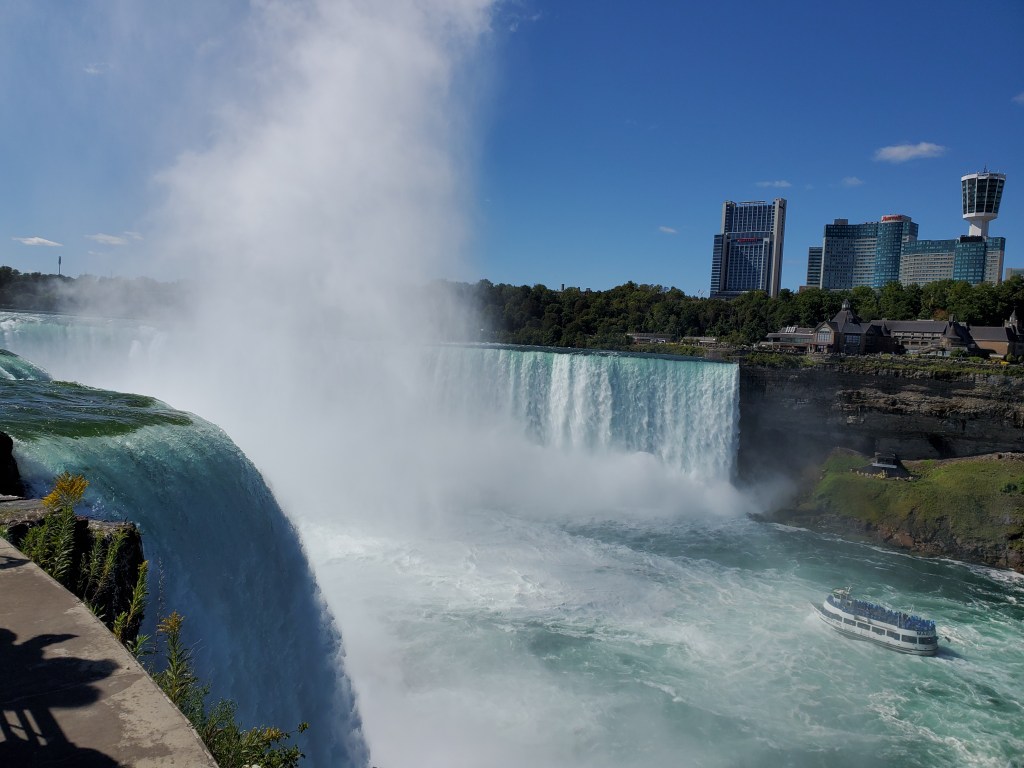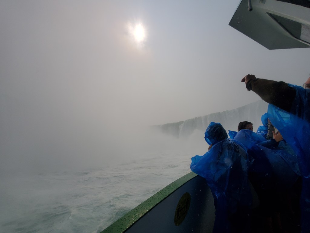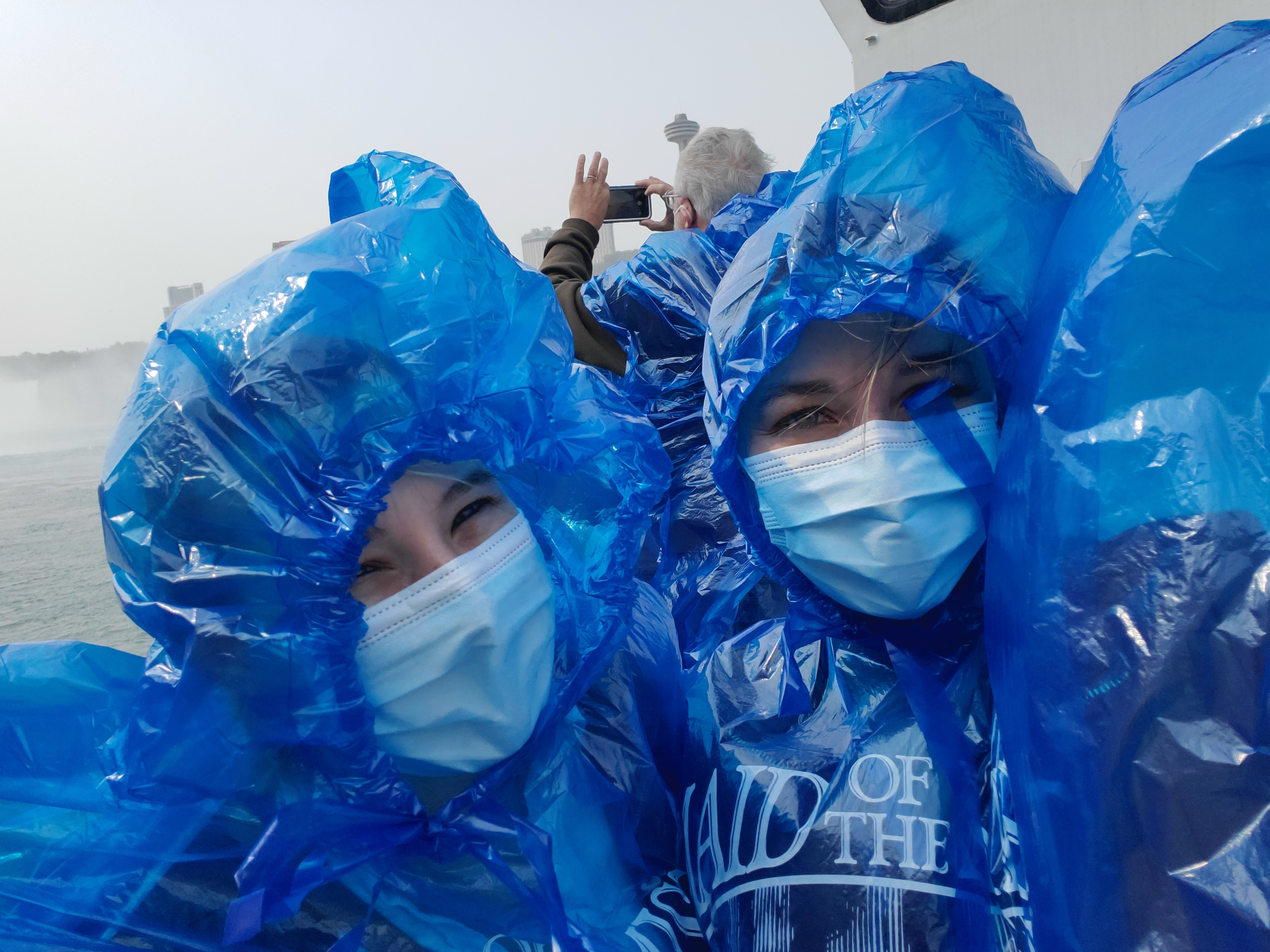 Luckily this meant that the line for Maid of the Mist was also short. We received our tell-tale blue ponchos (to match our blue masks, naturally) and were ushered onto a boat, where we had more than enough space to socially-distance. The boat toured past the smaller sections of falls – American Falls and Bridal Veil Falls (for the shape it resembles), leading up to the main waterfall that most of us know – Horseshoe Falls. The mist intensified and whipped our bodies, so any inch of exposed clothing was instantly soaked. Taking photos is a daring feat that requires ninja-like reflexes. But as the boat got right up against the falls, we put away our phones and took a rare moment to just experience it. Up close, the booming rush of water felt infinite and magnetic. It felt like a brief slowdown of time.