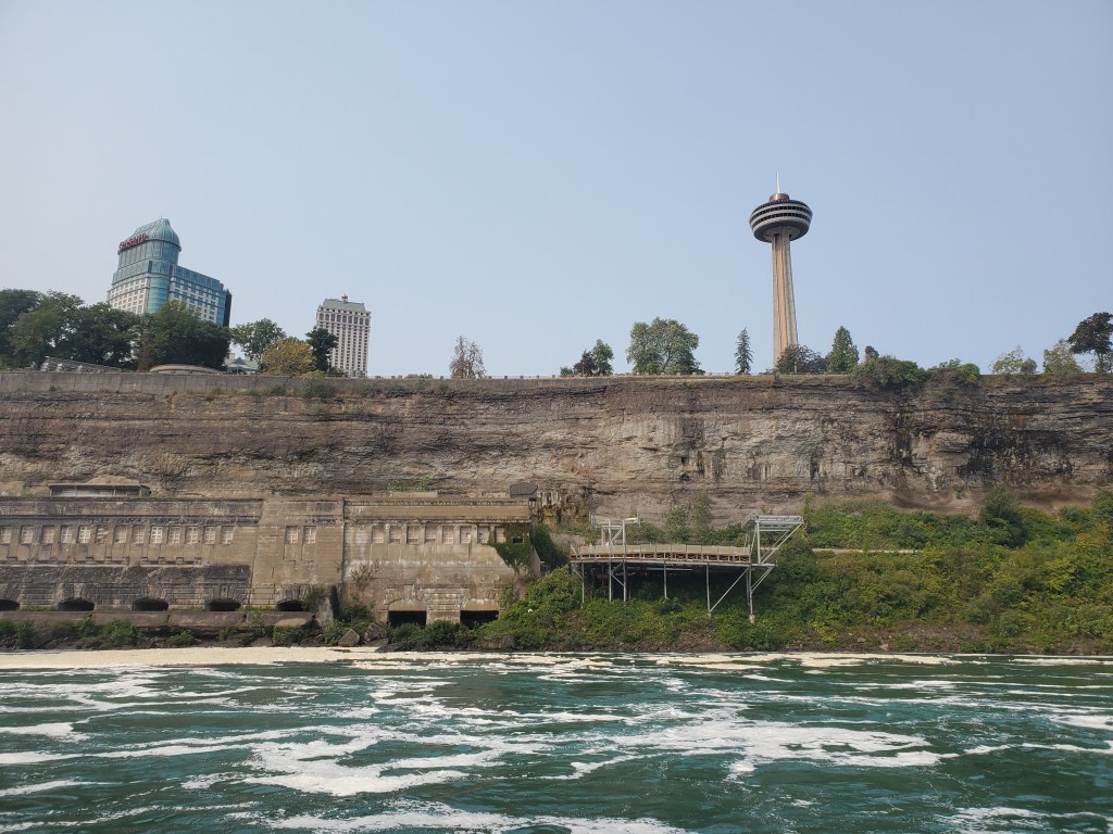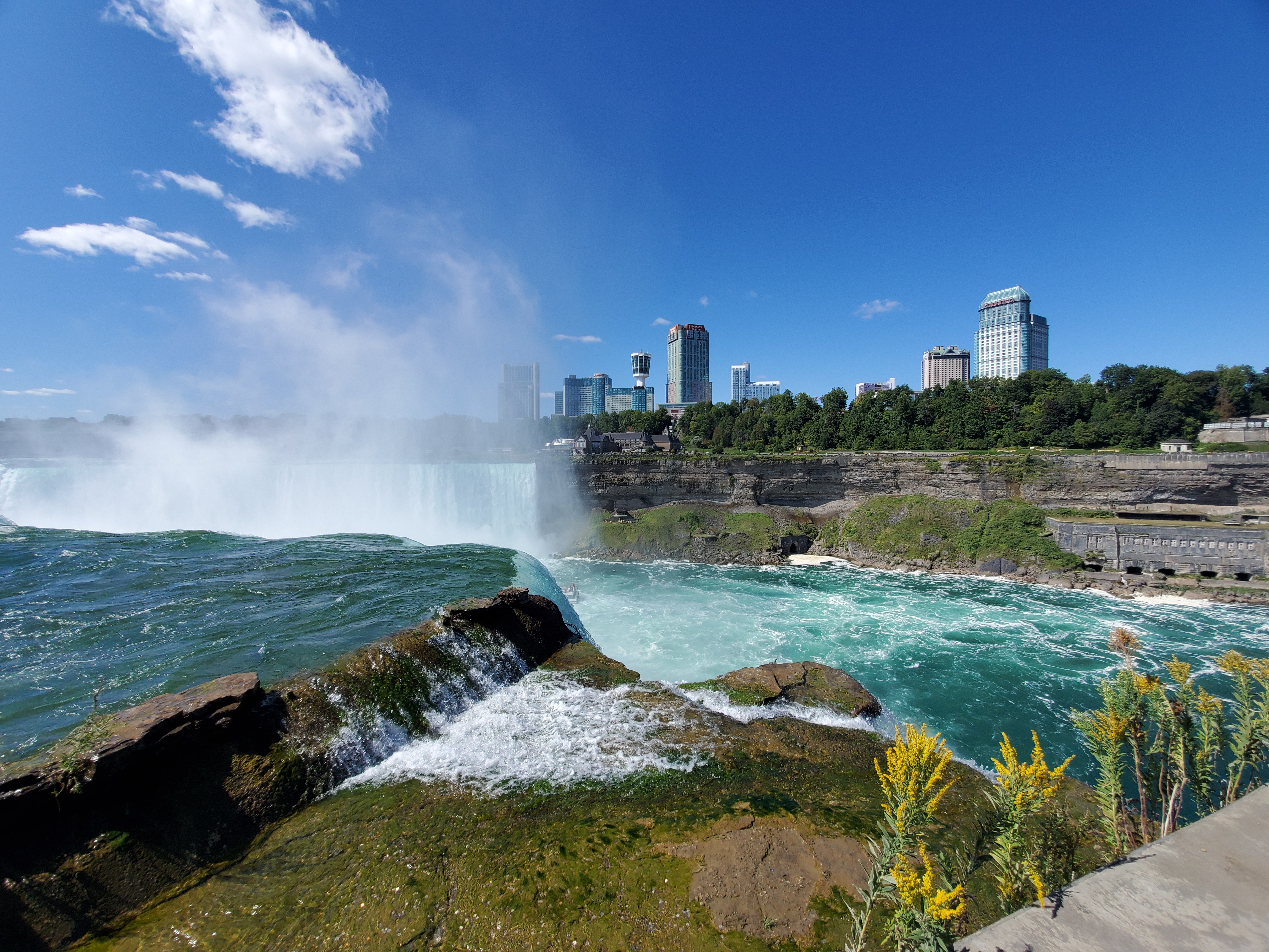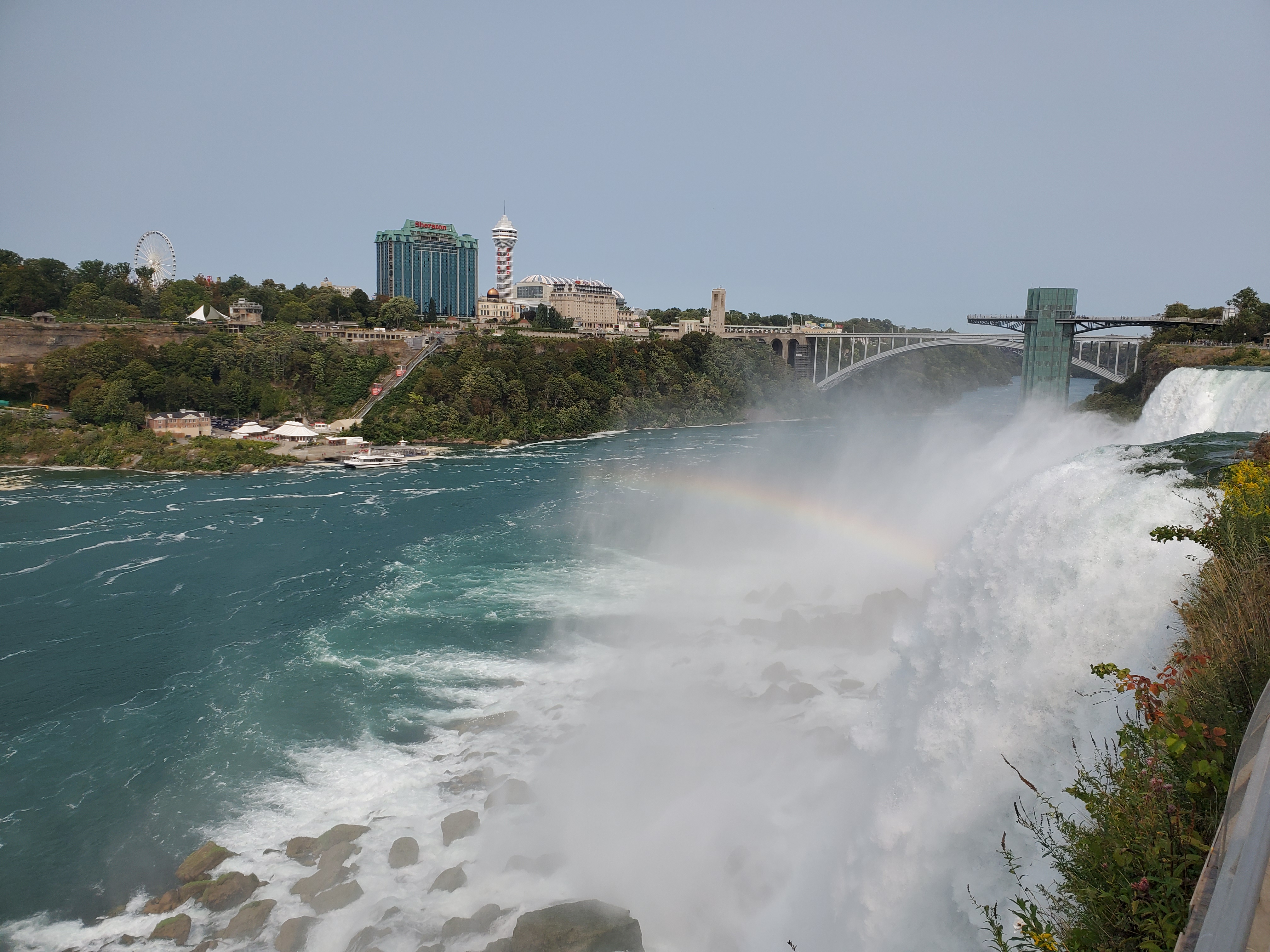 Luckily this meant that the line for Maid of the Mist was also short. We received our tell-tale blue ponchos (to match our blue masks, naturally) and were ushered onto a boat, where we had more than enough space to socially-distance. The boat toured past the smaller sections of falls – American Falls and Bridal Veil Falls (for the shape it resembles), leading up to the main waterfall that most of us know – Horseshoe Falls. The mist intensified and whipped our bodies, so any inch of exposed clothing was instantly soaked. Taking photos is a daring feat that requires ninja-like reflexes. But as the boat got right up against the falls, we put away our phones and took a rare moment to just experience it. Up close, the booming rush of water felt infinite and magnetic. It felt like a brief slowdown of time.