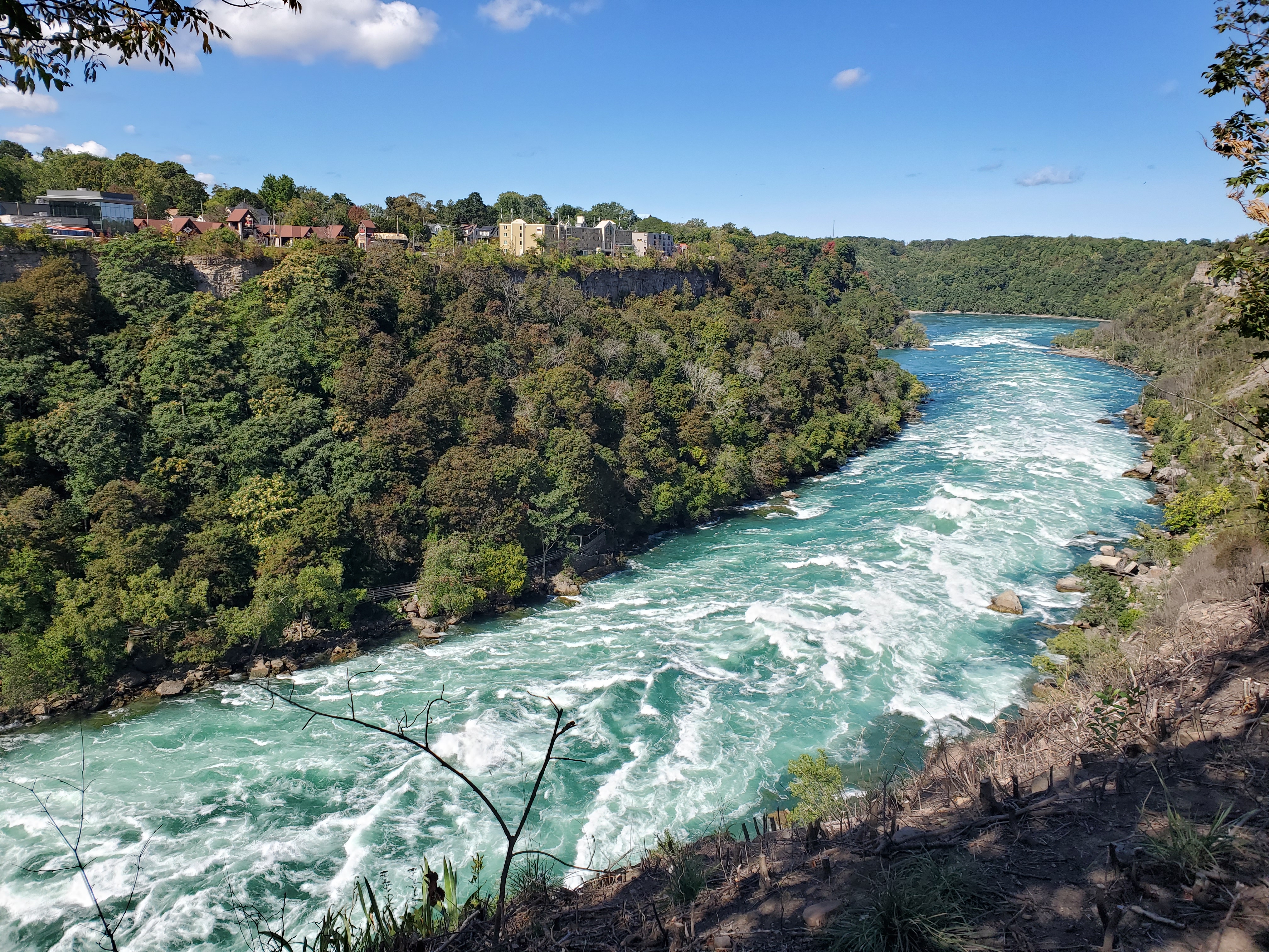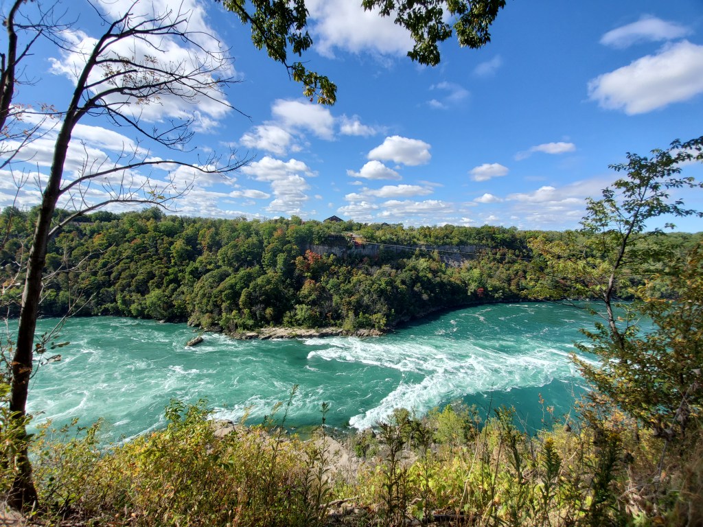 It would have been inappropriate to travel this far and do little more than drink at wineries. On-brand, but inappropriate. We’re in our 30s (or so my ID tells me). To resolve this moral enigma, we went on a short hike during our final day upstate. The Niagara River Gorge has several pretty hiking trails and can be accessed from a few nearby state parks. We chose to enter it at Whirlpool State Park and stick to the Niagara Gorge Rim Trail, walking alongside the water from high above. The water, an overflow from the falls, was a piercing shade of teal and swirled into a range of whirlpools. Some of them crashed violently into rapids and others swirled slowly around large embankments. It was still warm enough for t-shirts.