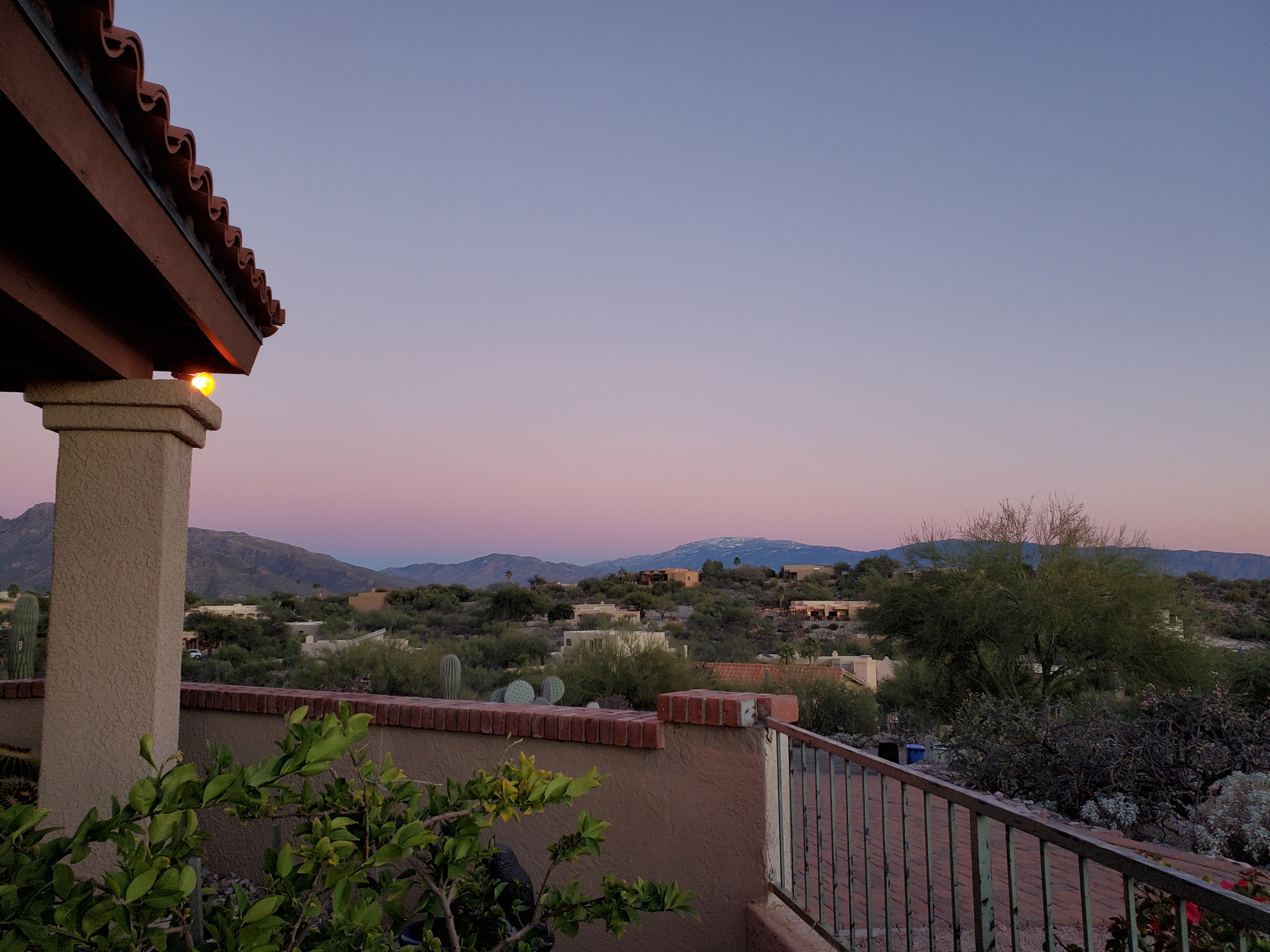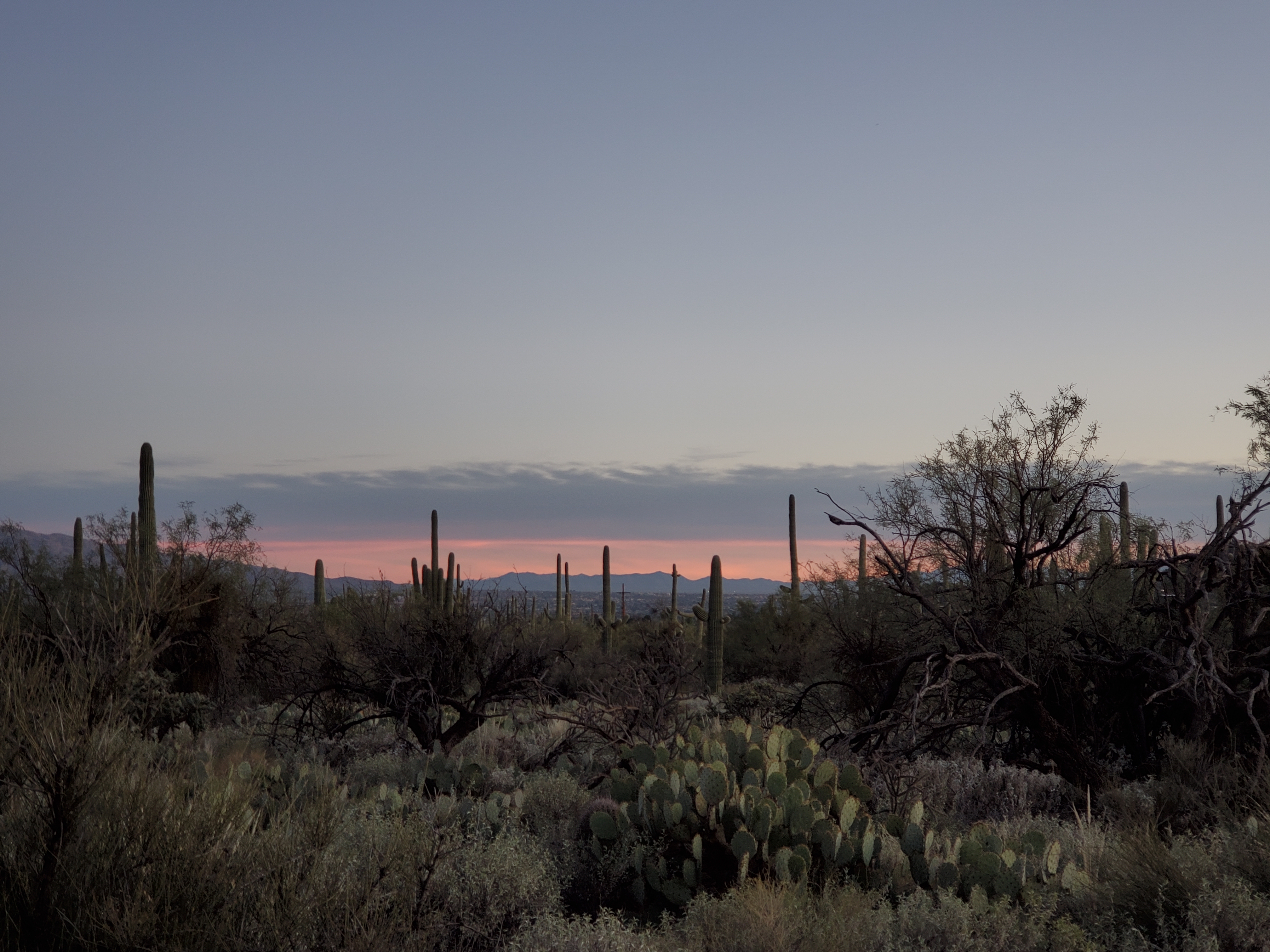 We woke up after a flurried New Years Eve in a lodge in Tucson. I had that moment of “where am I” as I opened my eyes…but I quickly settled, remembering that I was somewhere different than yesterday. My 30-something body struggles to stay up late these days, even for a ball drop (through a swirl of cheap champagne and flat beer). Today we checked into our Airbnb home for the next few nights to explore the Sabino Canyon area of Tucson, picking up a batch of groceries and some savory tamales from Tucson Tamale Co. to make the place feel like ours. Our Airbnb was perched on top of a hill in a quiet development with twisting roads and a distant view of twinkling downtown lights. It was slow and still. The light in the sky after sunset turns the shade of pale denim for just a few moments after the orange and pink hues have faded away. It’s different from every angle of the house.