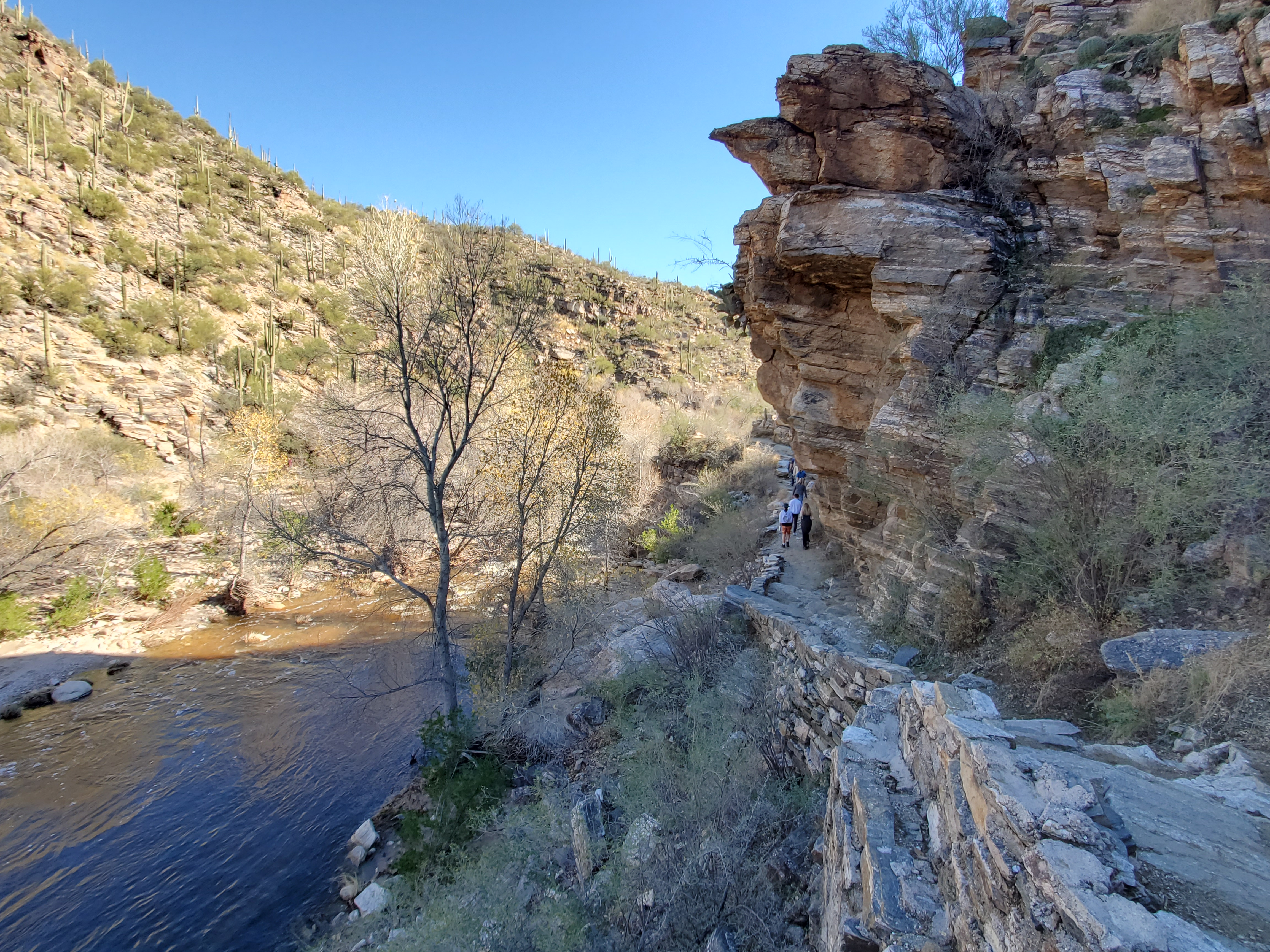 Sabino Canyon was experiencing an unusual level of flooding while we were there, which meant that most of the upper canyon hikes we’d planned to take were blocked, and the shuttle would end its route at Stop 2. It was a disappointment – I was craving that panoramic view of the valley that my mother always raved about on her almost yearly trips to Tucson. Before my grandparents passed away, they lived in Tucson for my entire childhood. There’s something that keeps drawing our family this way.