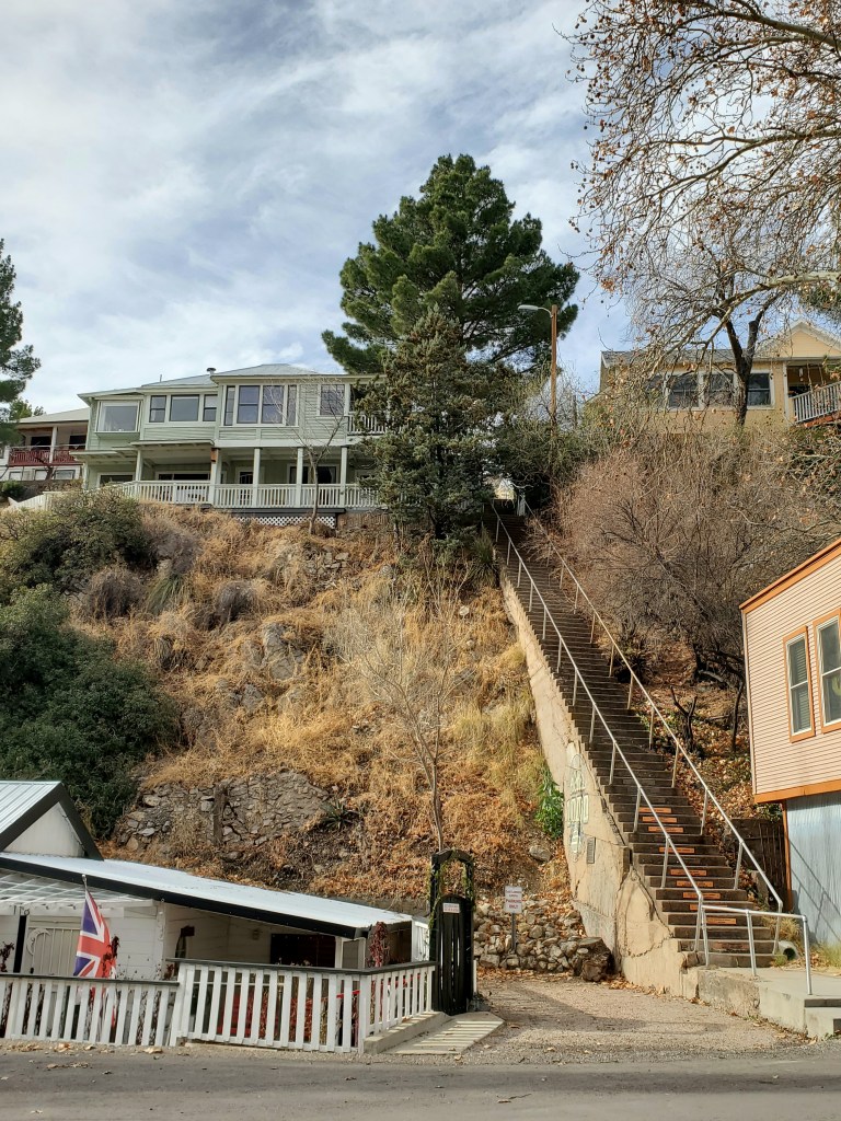 Bisbee was surprisingly quiet – our fault for choosing to visit on a Monday. The town has several breweries and a series of art shops. Peoples’ houses sit atop unrealistically tall staircases which seem to shoot into the sky. The whole town is shaded by the hills alongside it, and cell phones don’t always transmit. I went to buy a bottle of hand lotion in the most unusually themed store – vinyl records, jars of salsa, and skin products. Oh well. The lotion brand, Udder Delight, was from a shop that my family and I had stumbled upon in rural New Mexico years ago and I’d never seen it sold in another store. The man checking us out managed to rope us into an endless and convoluted discussion about the top 75 things on his mind. His hands rolled the bottle back and forth along sheets of wrapping tissue as he rambled on, and I wasn’t sure if he’d ever surrender it to a shopping bag. Even as we inched towards the door with polite but impatient smiles, he followed behind us, weaving tales about politics and pranks his neighbors play on him and the history of Michael Jackson.