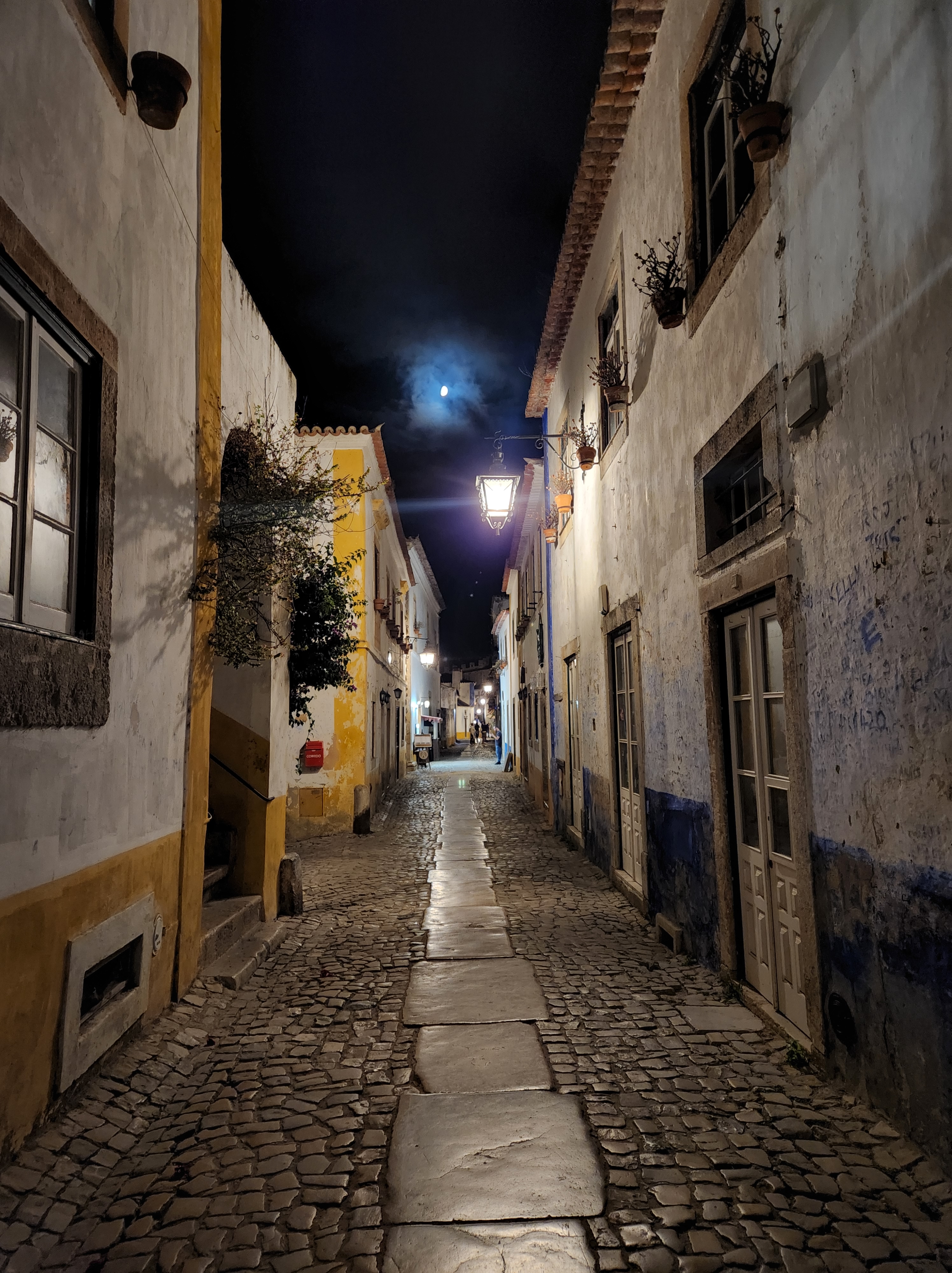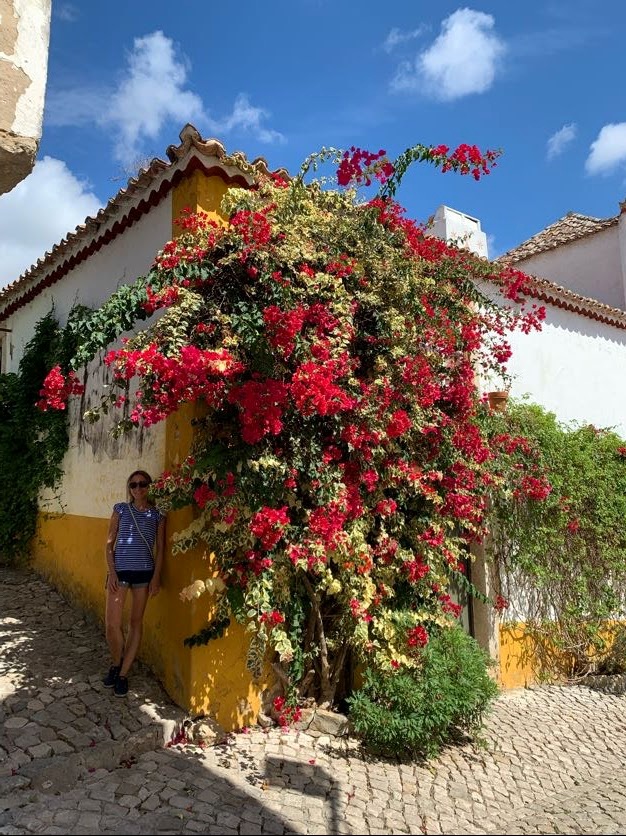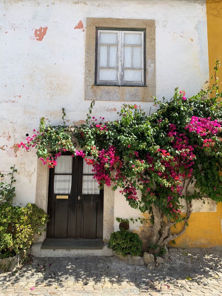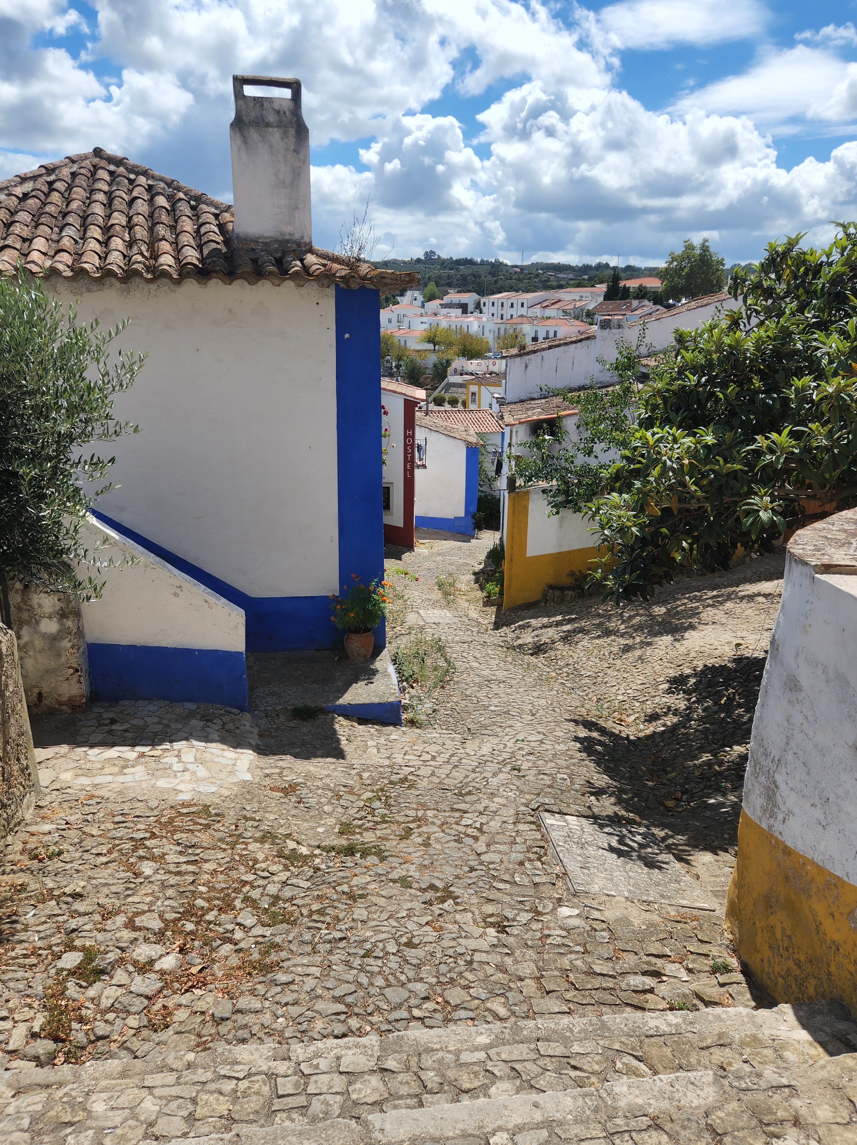 We left Lisbon and picked up our rental car to drive to Obidos. Portugal drives on the right side of the road which inevitably eases my “new country driving” anxiety, but once you leave major highways you can see why people hesitate to self-drive. Obidos is a small village surrounded entirely by castle walls, so only the bravest attempt to park inside of town “proper”. We went searching for a parking lot but managed to pass our street as the road turned to complete cobblestone and narrowed significantly. We clobbered forward alongside the castle walls to our left, easing our way past stone walls on a road barely wide enough for a small car. The cobblestones were uneven and dipped in places. Somehow, we managed to find a spot right up against the castle wall like a parking miracle. We later learned where the big parking lot was that we had missed, but I like to think that parallel parking between slabs of 12th-century stone was more character building.