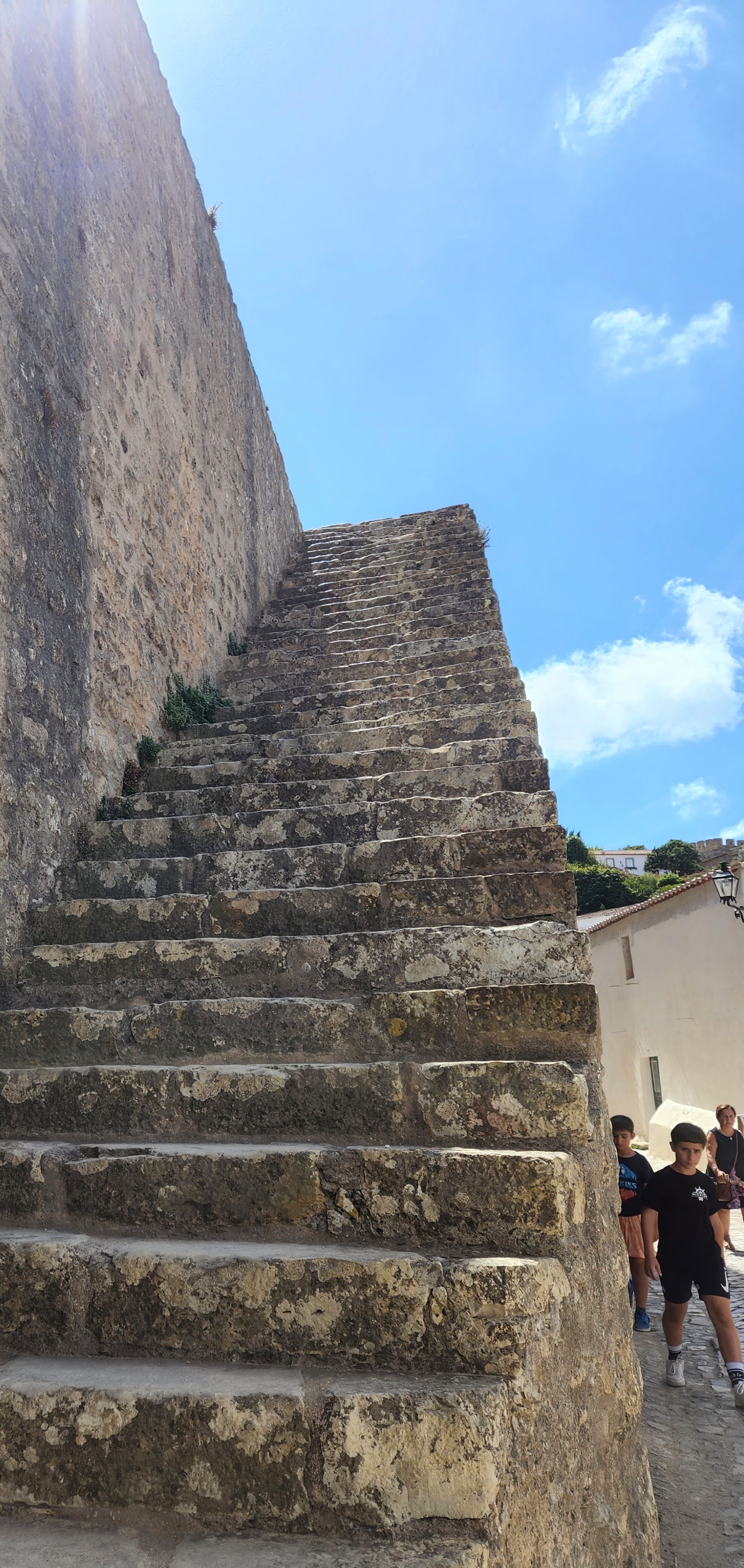 Visitors can climb the walls that surround the town at almost every turn – this was a surprise for me. Every so often there is a set of massive stone steps that bring you right to the top. Some wall paths are wide enough for 2-lane walking traffic, and others are barely wide enough for one person to pass. It was dizzying at moments, and I had to pause and consider whether I was ballsey enough to traverse certain stretches of wall. There are NO guardrails on one side. A dad walking ahead of me pulled a nervous child by the arm as she clung to a side of the stone like wall taffy. The occasional aggressive burst of wind made the experience that much more colorful.