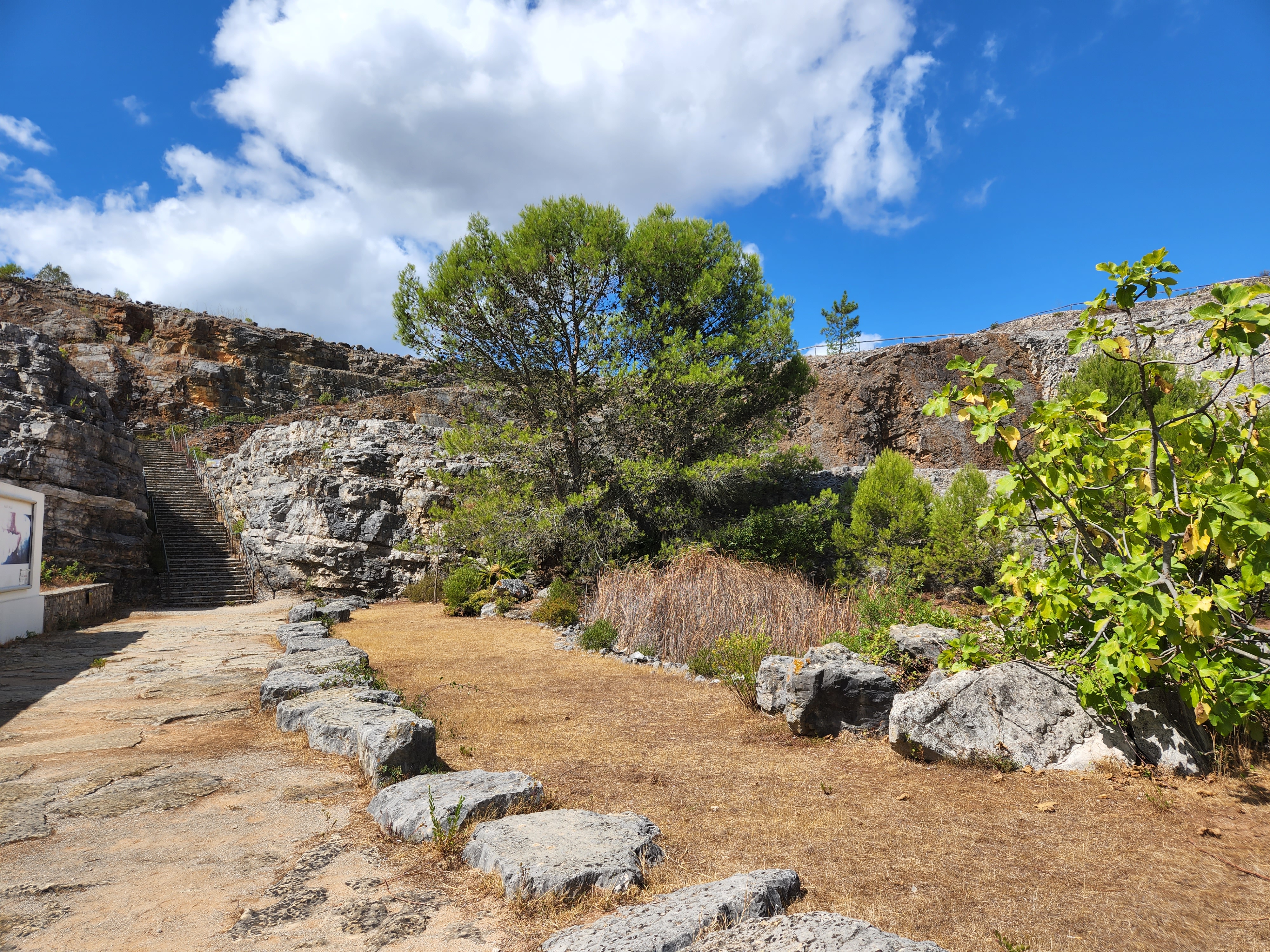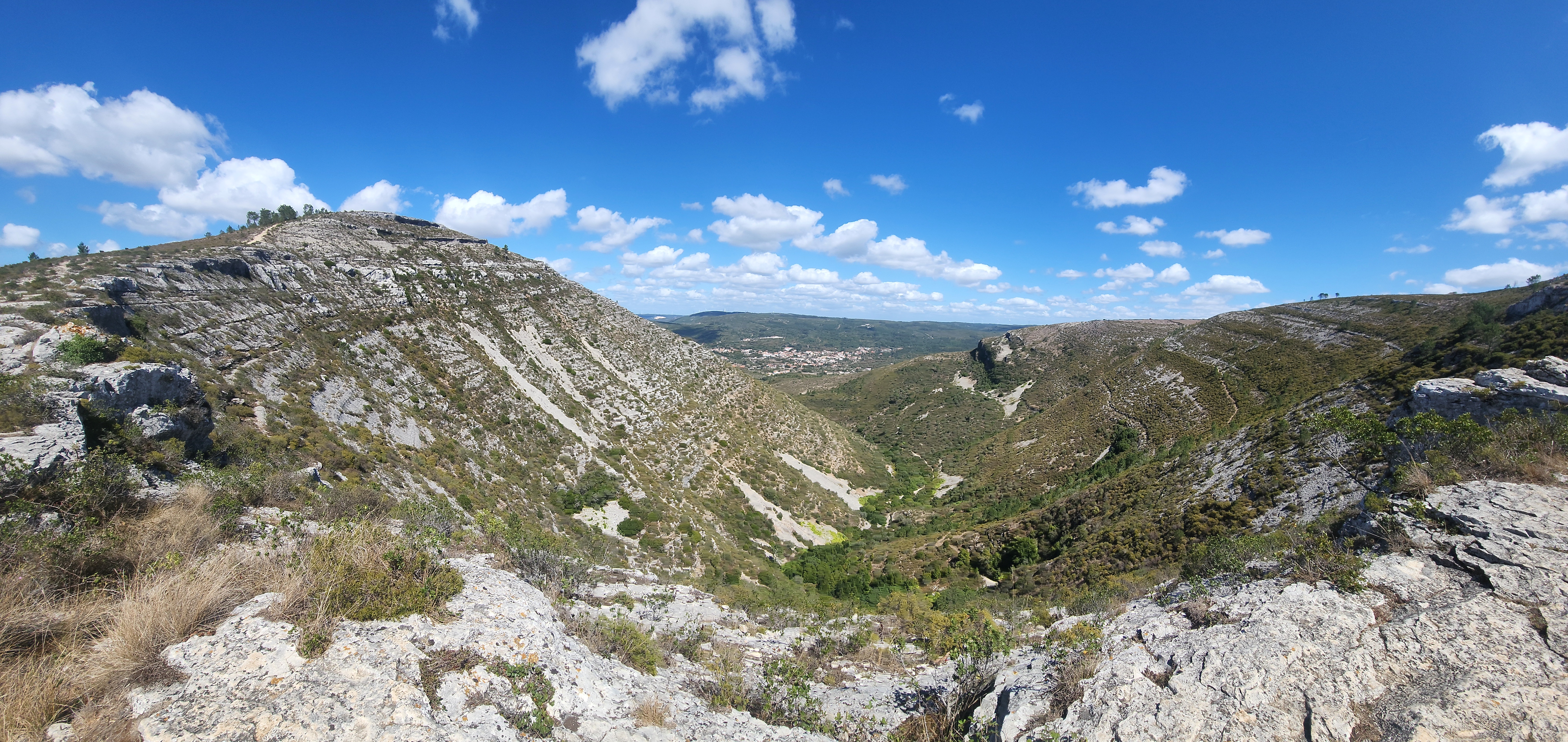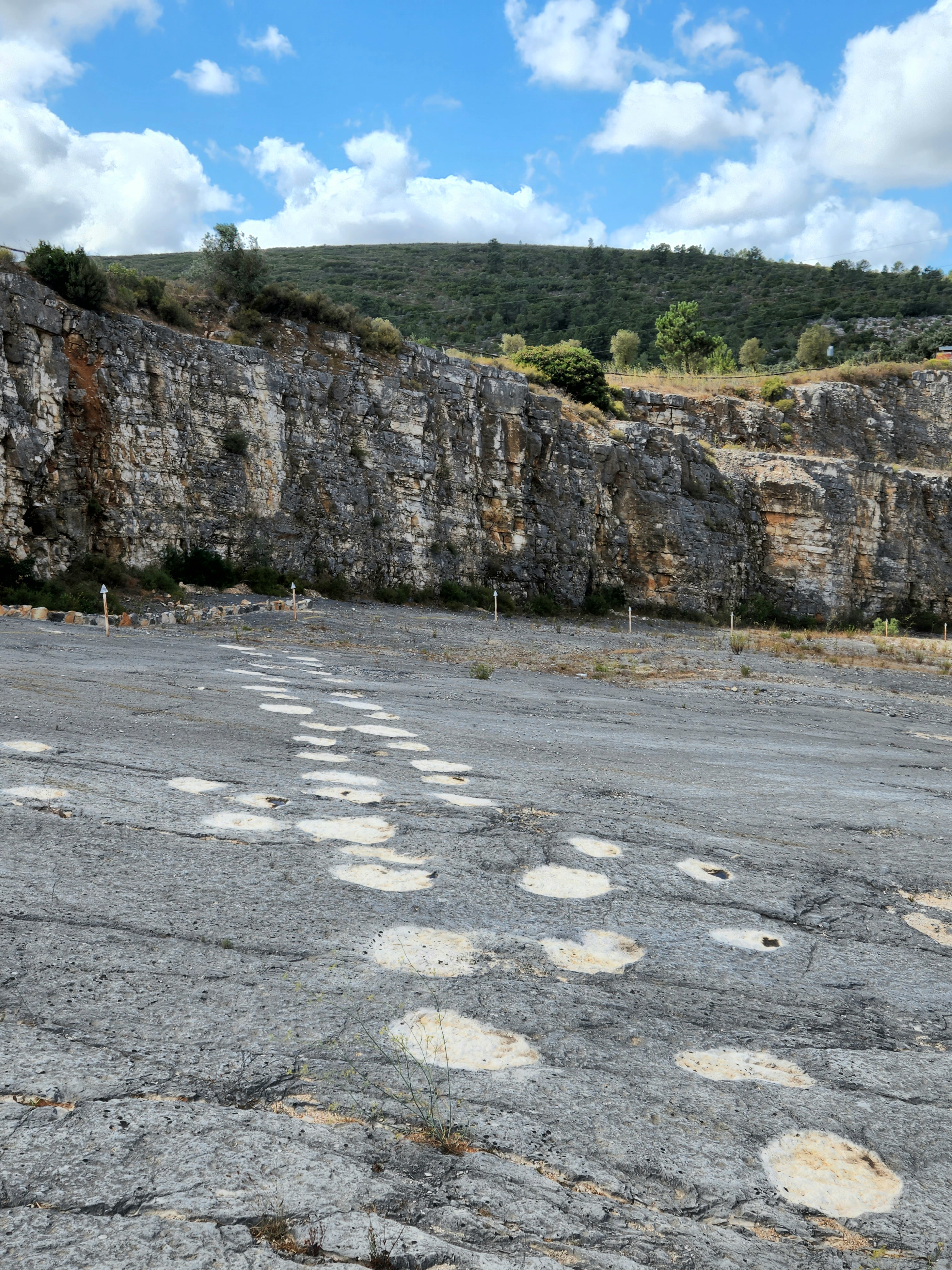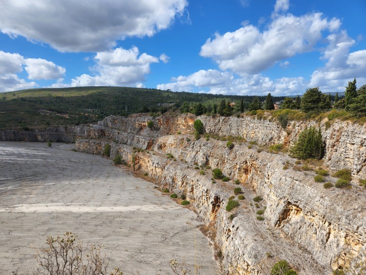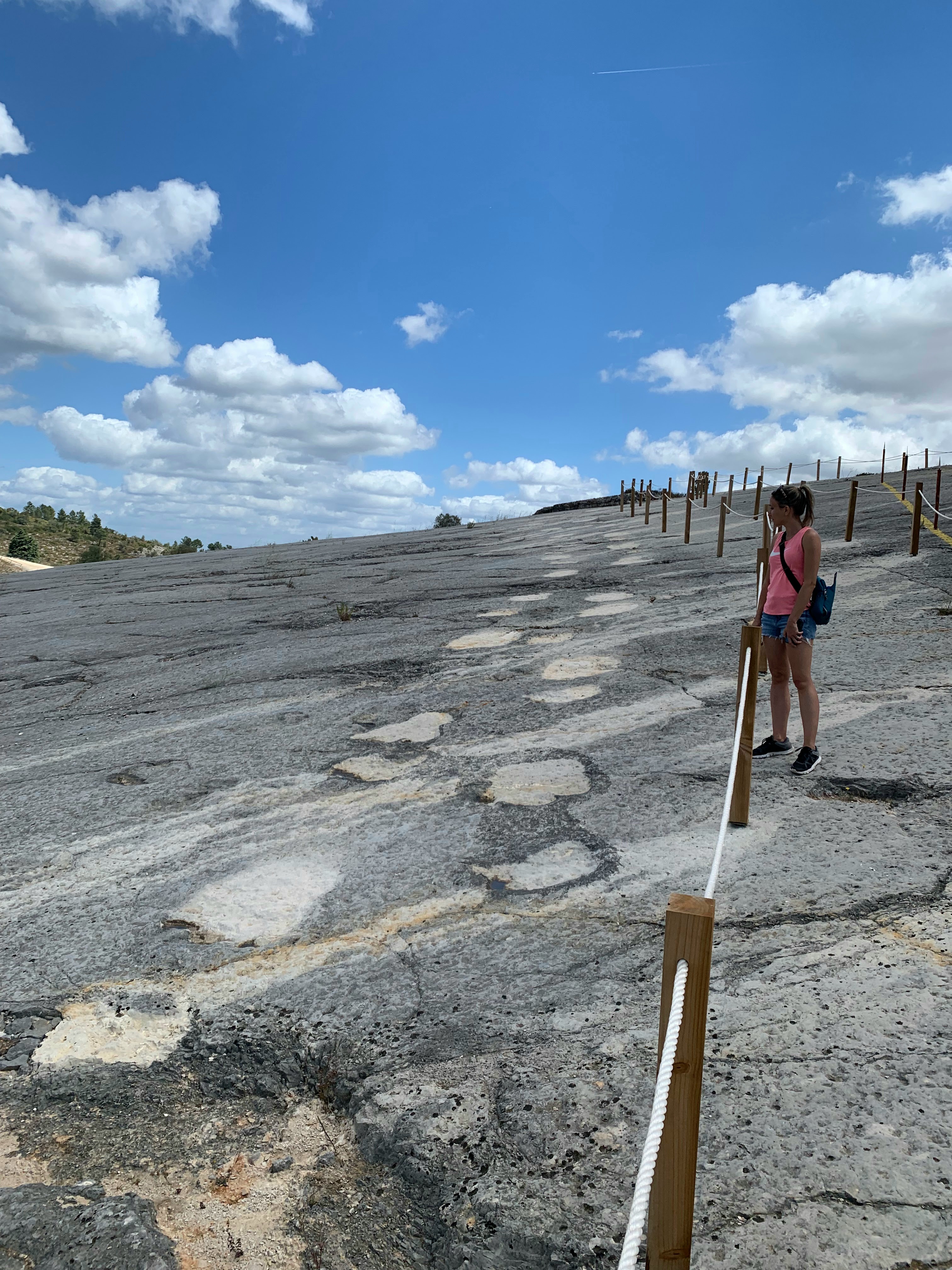 I was sad to be leaving Obidos after only one night. There was something soothing about a village protected by castle walls, which became so quiet and serene at night. We fetched our car from the impossible parking space alongside the old walls and cobbled down a few skinny roads until we were on pavement again. On our way to Nazare we made a stop at Pegadas de DinossΓ‘urios da Serra de Aire Natural Monument (say that 5 times fast). The monument sat inside of Serras de Aire e Candeeiros Natural Park and is home to some of the world’s longest recorded dinosaur tracks. Reaching this particular part of the park meant weaving in and out of miniscule villages and down quiet stretches of rural pavement, only noticing that we had arrived at the monument due to a few tiny signs. There was a single-story structure that housed the monument’s office and a small museum, and we were 2 of only about 5 visitors at the time of arrival. After paying admission there were sets of paths to follow towards the footprints themselves, one of which brought us to a cliffside viewpoint that let’s you see massive striated canyons overlooking what was once a prehistoric lagoon. Down below you can walk along the same rocky areas that house the massive footprints, blocked off only by ropes. The footprints spanned several long stretches of land from one side to another and are estimated to be 168 million years old, back when Pangea was still intact. Just the fact that researchers could determine that continents were once connected in part because of animal tracks continues to be mind-numbing to me.