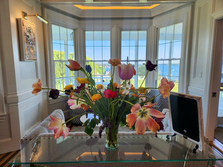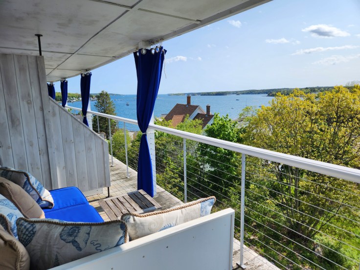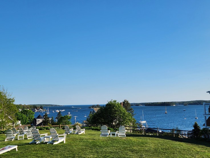 We stopped for two nights in Boothbay Harbor, a small town about 3 hours south of Acadia. After turning off the major highways, hilly backroads lead you into town, rolling up and down country roads for most of the journey. There is no direct or high-speed route; it was all directions like “turn right on Martin’s Street”. We checked into the Topside Inn at the top of a steep road, a quiet and airy spot that overlooks the water, where we were greeted with a welcome cocktail and a homemade mini piece of quiche (hello, I’m yours).