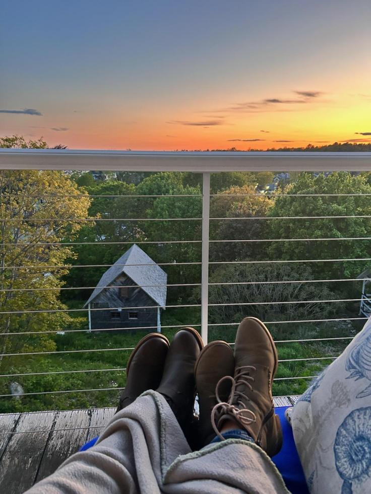 We watched the sunset on the balcony outside our room afterward, from a pillow-covered porch couch that allowed for sufficient lounging. The panoramic orange skies were sprinkled with the persistent sounds of birds coming from all directions, almost like they were confused about whether it was morning or night. In the harbor you could hear an occasional boat or buoy and see a flicker of light. Below our room was a chicken coop, and above, I’m pretty sure was Venus lingering low in the sky. It pierced the fleeting daylight, across the pink haze. I felt the peace so deeply, in my bloodstream, the kind I’d been grasping for. An infinite sky over such a quiet space, where everybody was turning in. Out on the horizon, my soul can regulate. Like the calibration of a clock.